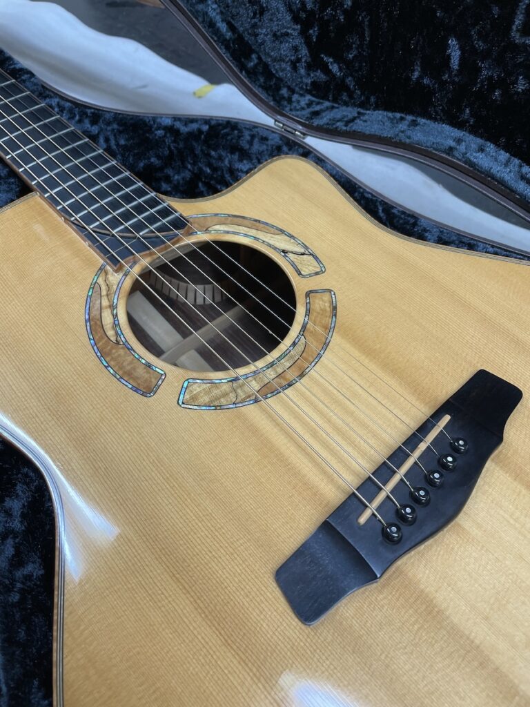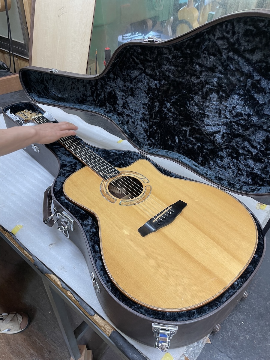 今回オーダーのモデルは「TDN-AR」。とても久しぶりのドレッドノートです。トップ材にはアディロンダックスプルース、バック&サイドはインディアンローズウッドです。