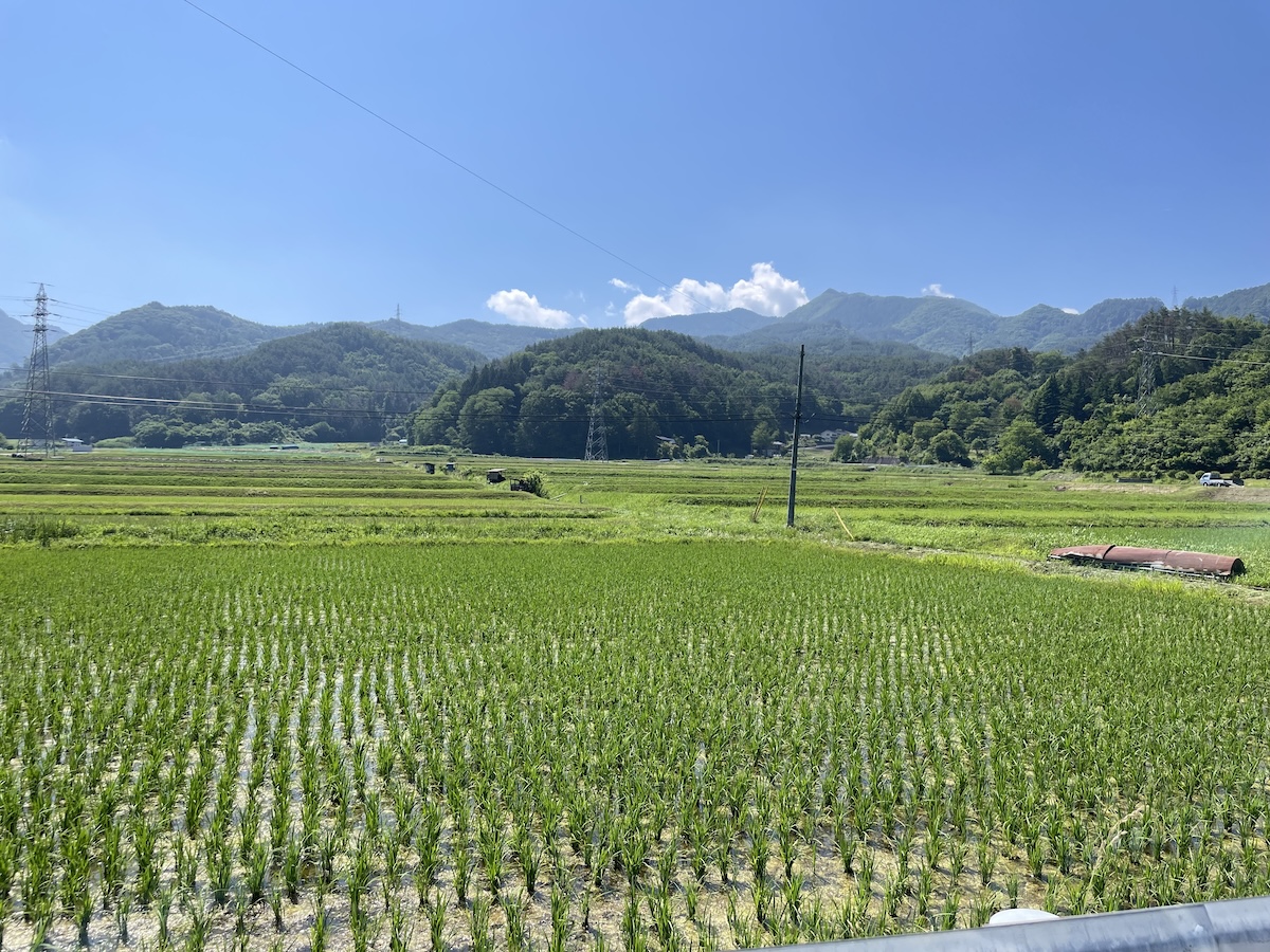 車中の朝食は南魚沼米のおにぎり。天気も良いし、景色も良いし、最高。いつか南魚沼の新米が取れる頃に「ギターと美味いもの」イベントも開催したいと密かに思っています。