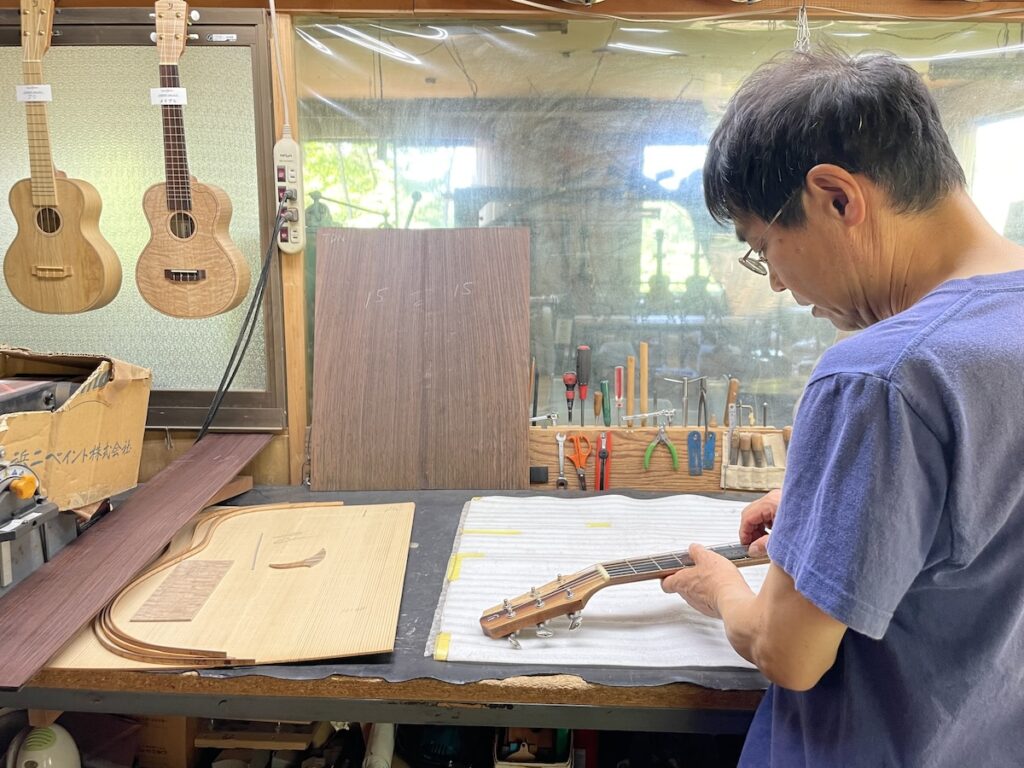 その他、イベントの合間を見ながら、ご来場が叶わなかったお客様の調整品や、ウクレレの最終仕上げなどの作業も行いました。