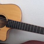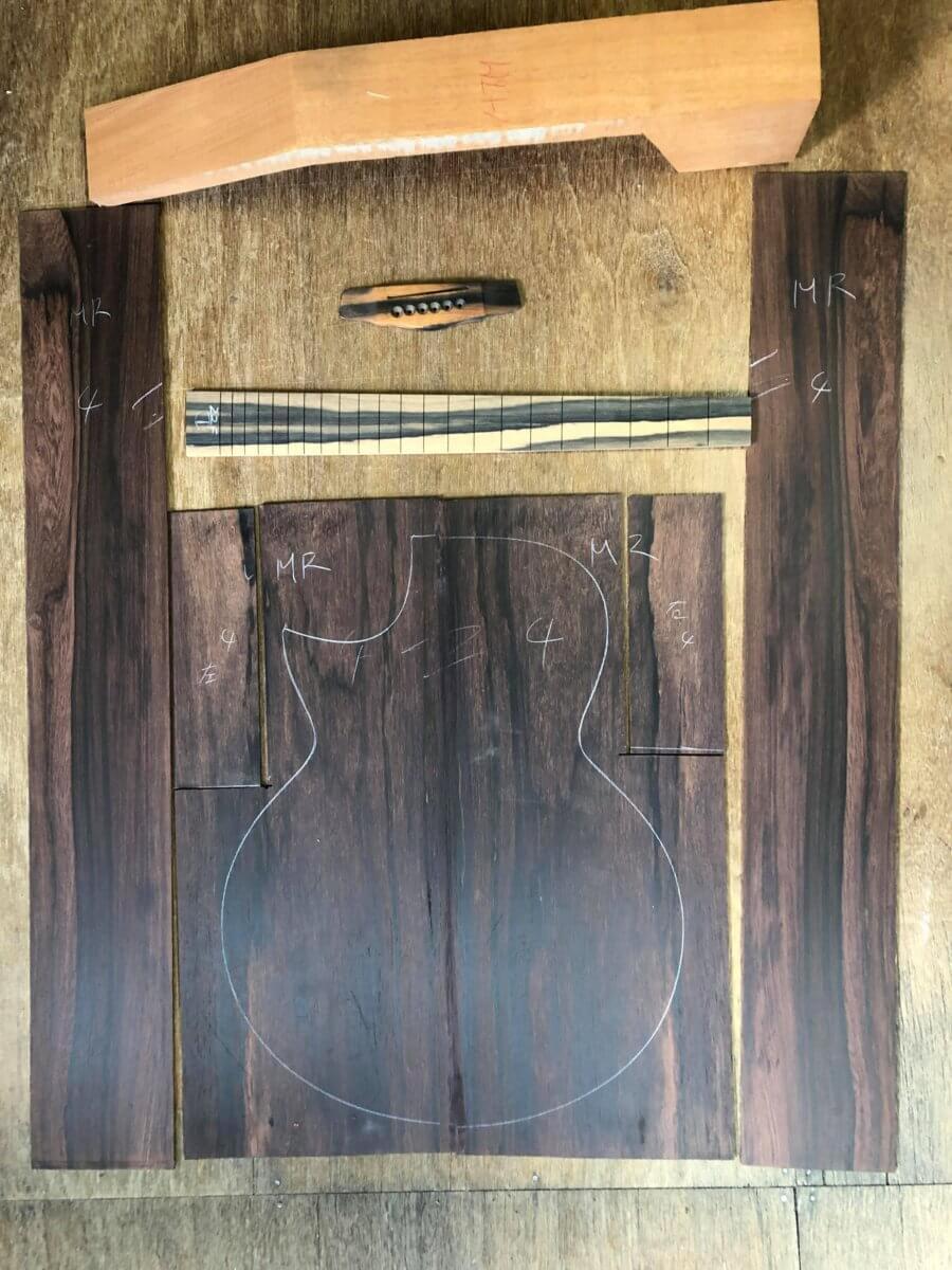 バック&サイドはマダガスカルローズウッド、指板&駒はエキゾチックエボニーです。いずれも美しい杢です。
