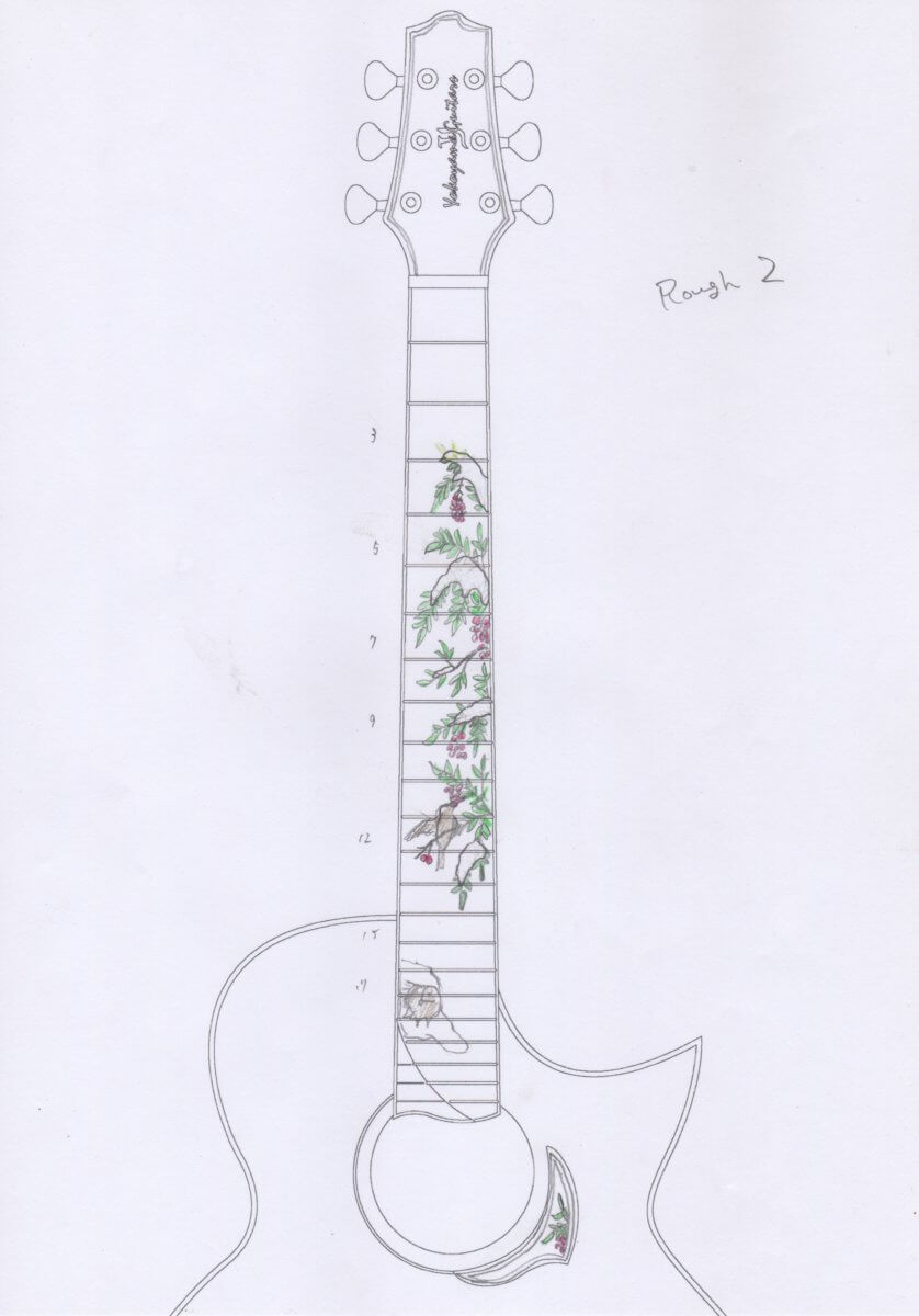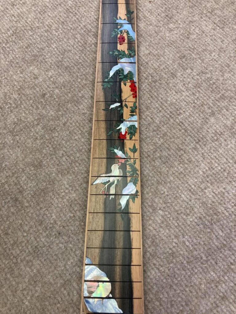 今回のオーダー品はOGAWA INLAY CRAFTの小川さんによるカスタムインレイをご希望いただいたので、小川さんにデザインしていただきました。