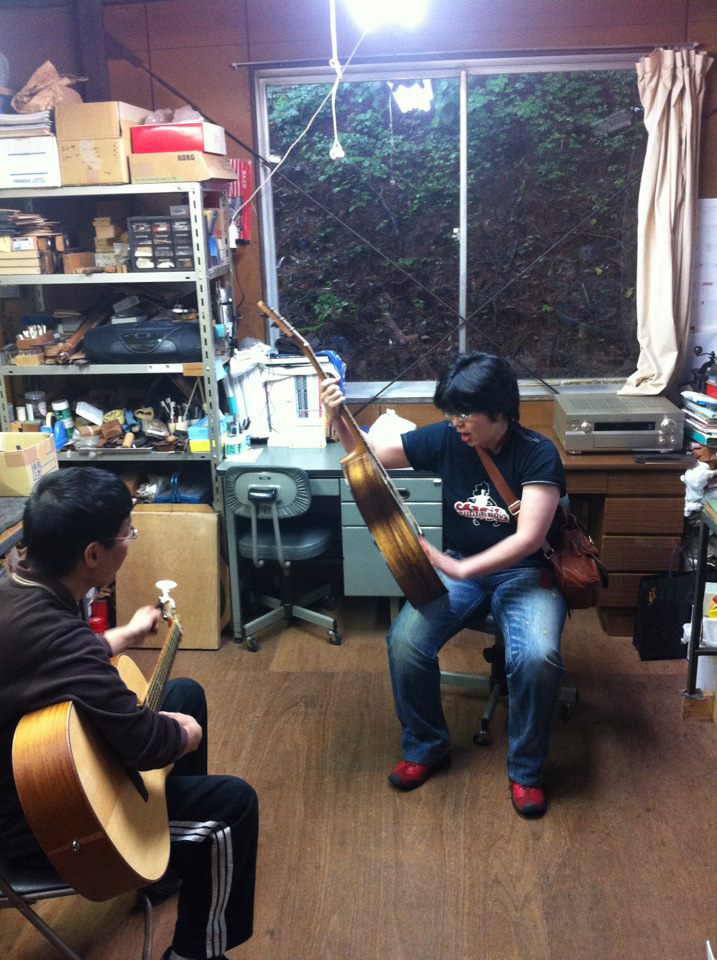 愛知県のK様とオーダーしていたウクレレの完成品を受け取りに、Yokoyama Guitars工房へ行ってきました。