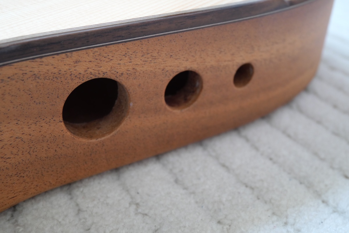 ボディの抜き方もひと手間かけて、以前のものより少しサイド、バックの板厚を変更しています。