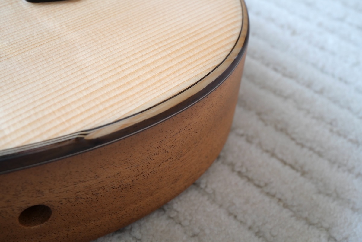 今回製作にあたり、一番気にしたのは全体のボディ厚。もう少し箱鳴り感が欲しいと思い、厚胴を採用しました。