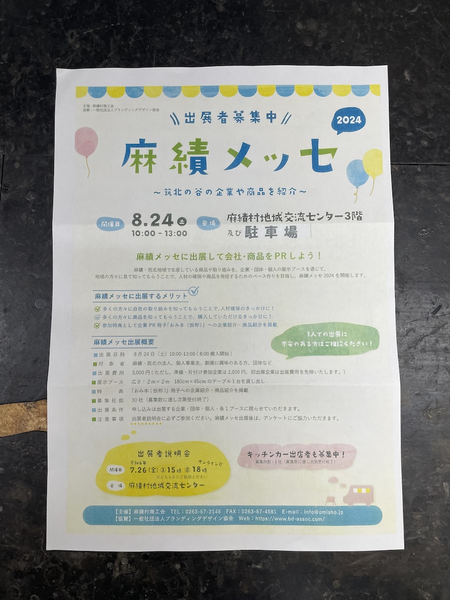 工房へは、昨年初開催となった「麻績メッセ」の第二回目の案内が届いていました。今年も参加する予定です。(8/24 土曜日開催です。)