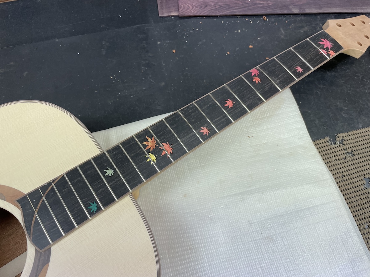 まずは、N様オーダー分のAN-GH。オガワインレイクラフトさんへお願いしたインレイが、美しく散りばめられています。