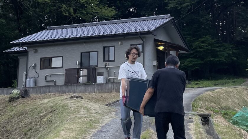 不要な家具を運び出し、大家さんに譲っていただいた冷蔵庫を運び込みます。工房の真裏なので、作業もはかどります。
