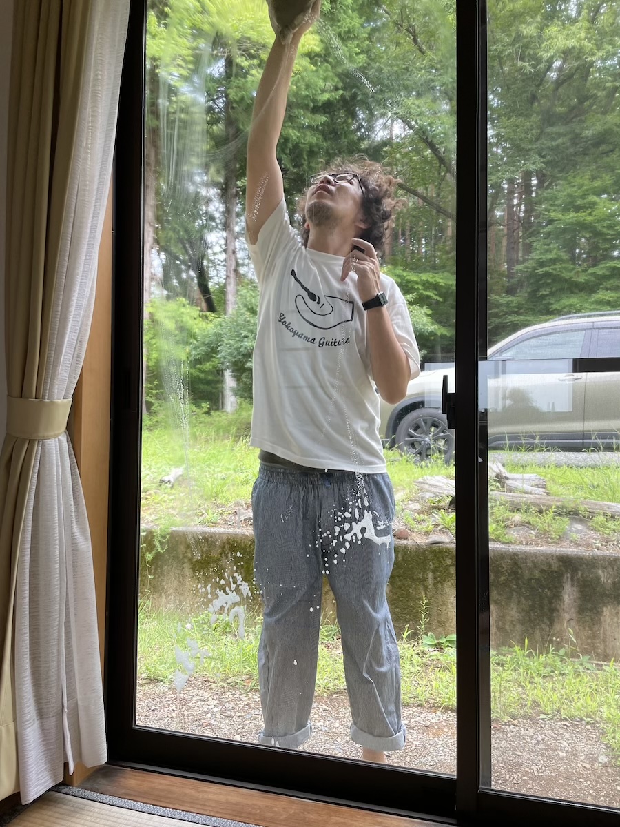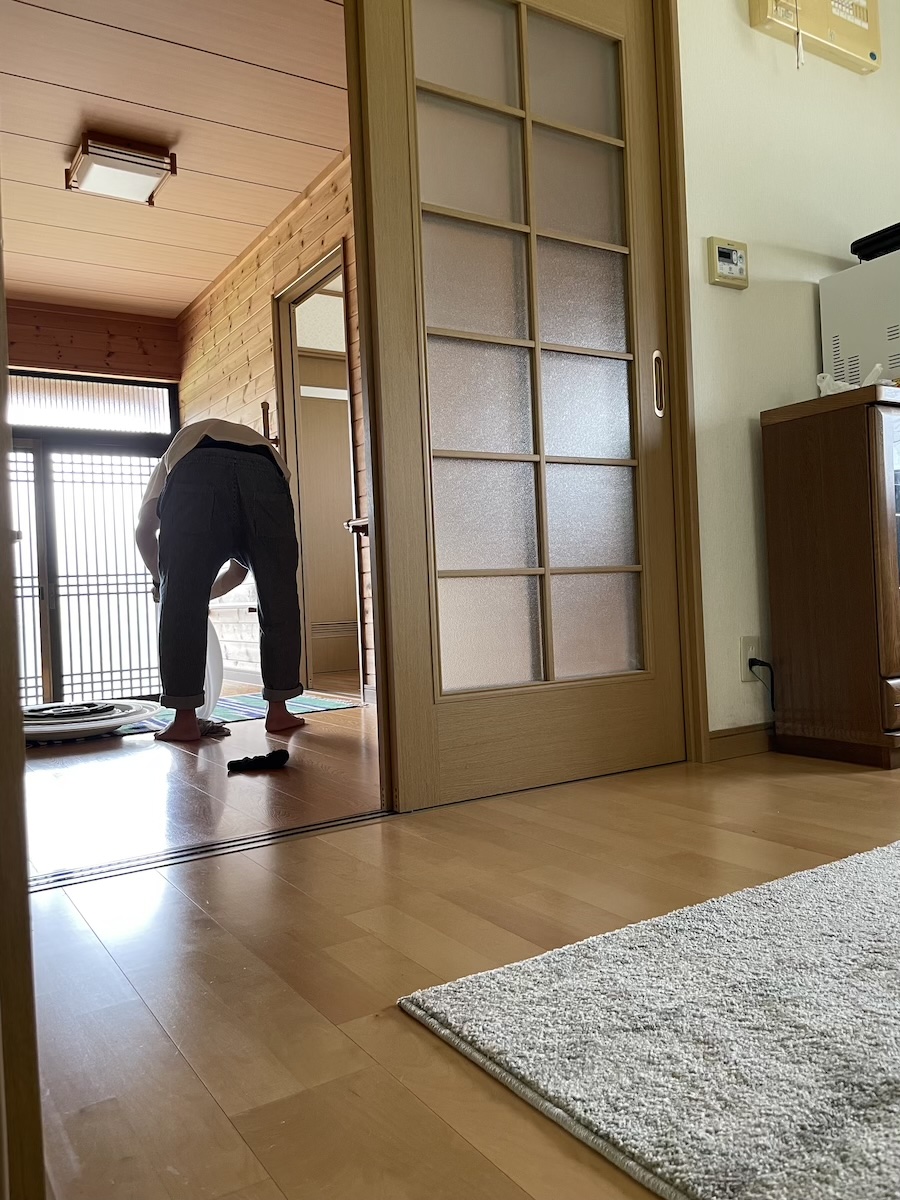 窓、天井、壁と拭き掃除をしつつ、用意したラグなどを配置していきます。