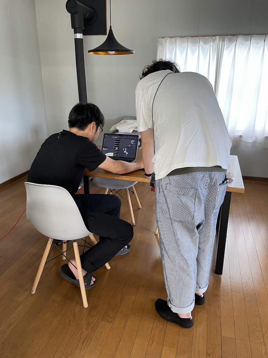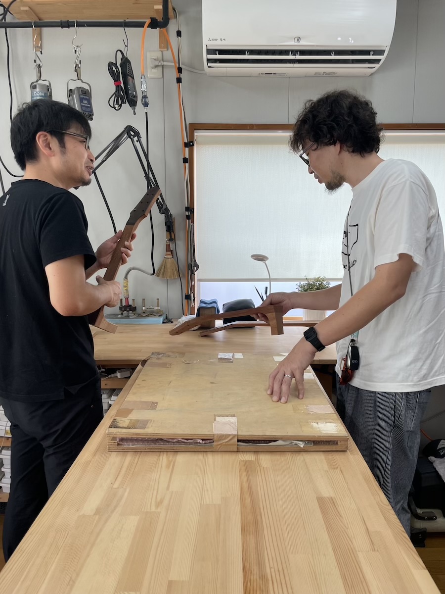 T様モデル以外にも、2025年お年玉ギター用企画も打ち合わせします。今回はお願いして、小川さんにも企画に参加いただいています。