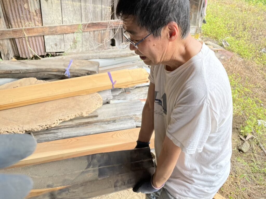ちょうど良さそうな材料を見つけて、軽トラックまで運びます。