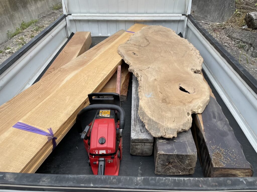 硬いのでチェーンソーで切るのもひと苦労。ようやくカットできた材料を車に積みます。これが異常なほど重いのです。