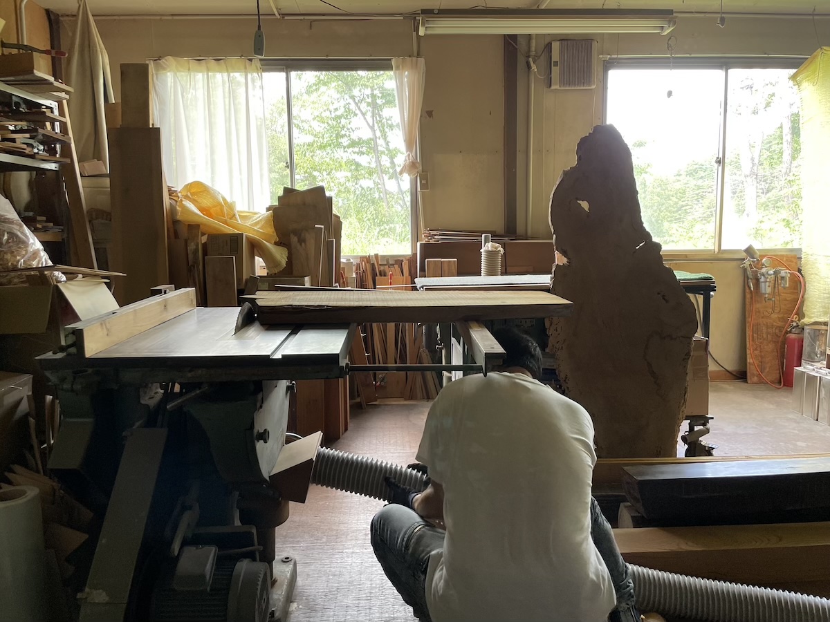チェーンソーで切ったとはいえ、工房へ運び込むとかなりの存在感です。これをここから加工するのも大変そうです。使える材料であることを期待します。