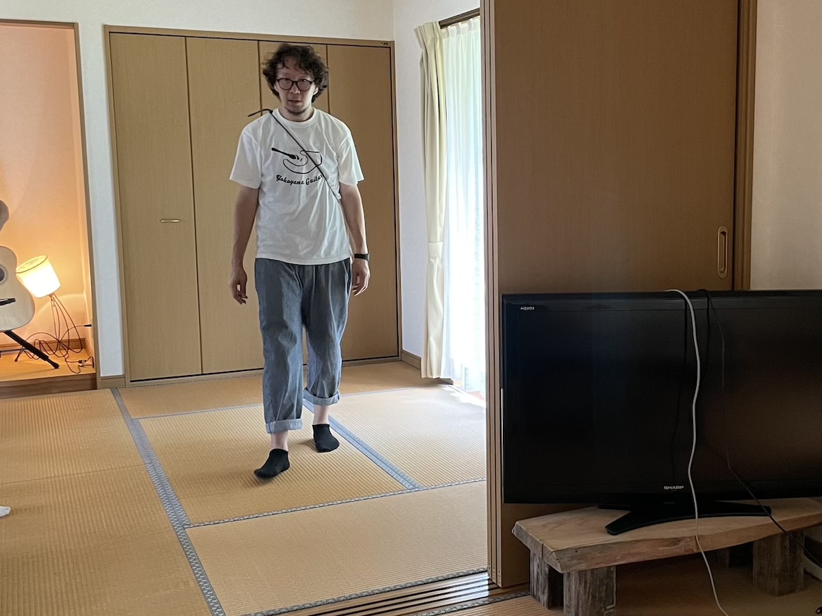 運び込んで組み上げると、サイズはぴったり。「秘密基地」用の檜材の贅沢なテレビ台となりました。折角なので、こういうのも面白いですよね。
