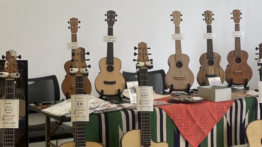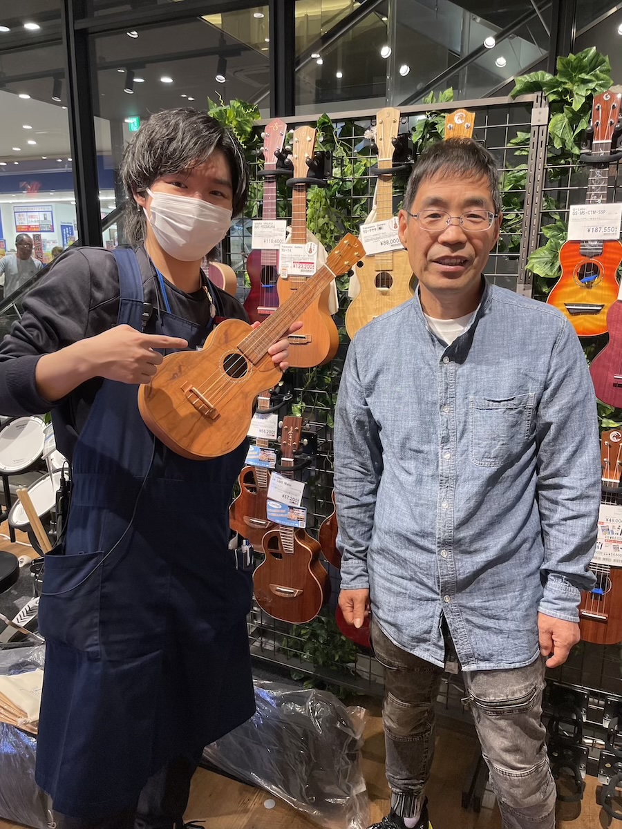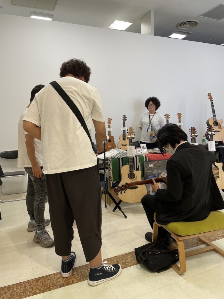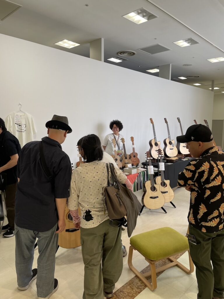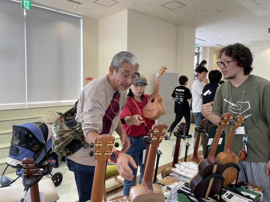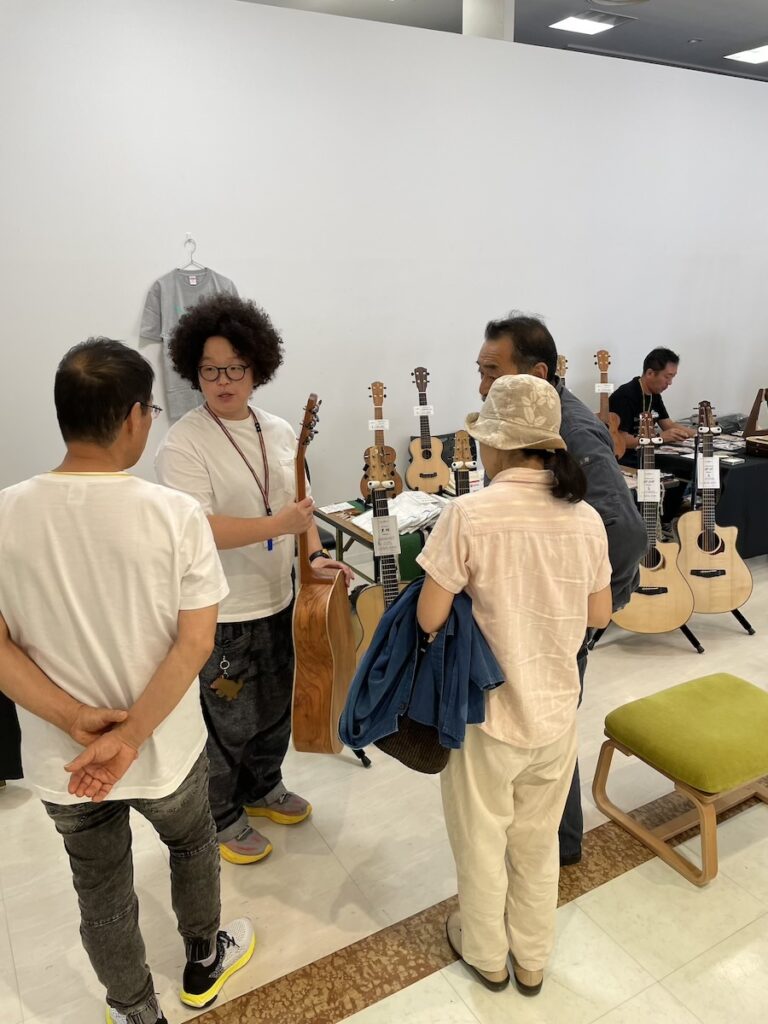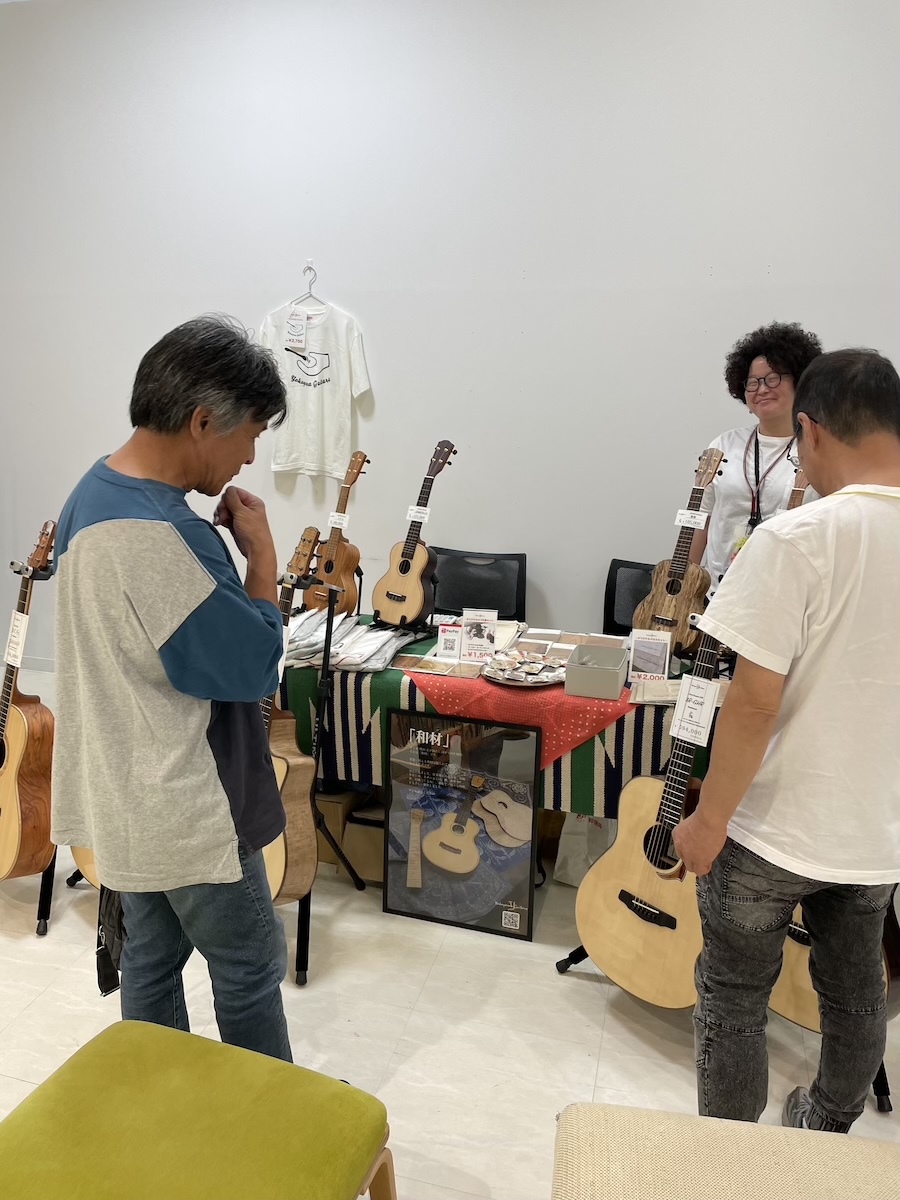 今年も和材を気にしていただくお客様が多く、早速コンサートウクレレの「もみぢ」を東京都からお越しのお客様にお気に入りいただきました。