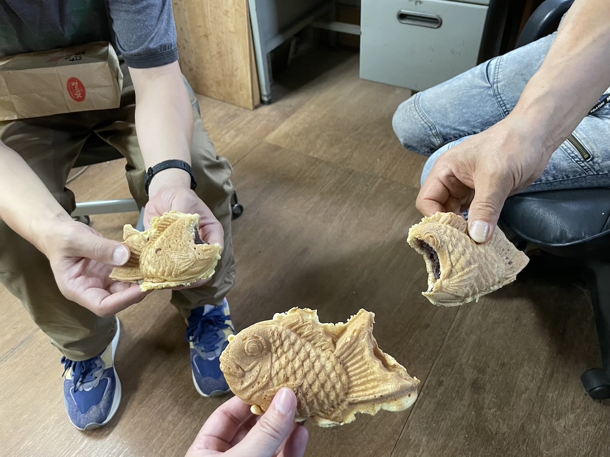 お客様オーダー品の確認をしながら、3時のおやつにたい焼きを食べて、搬入に向かいます。