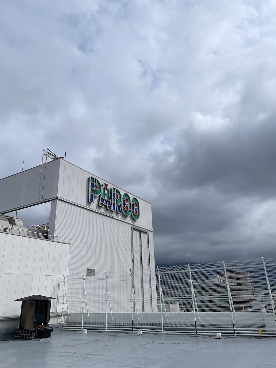 パルコのこの景色も見納めかと思うと寂しいですね。曇っていますが、雨は大丈夫そうなので安心です。
