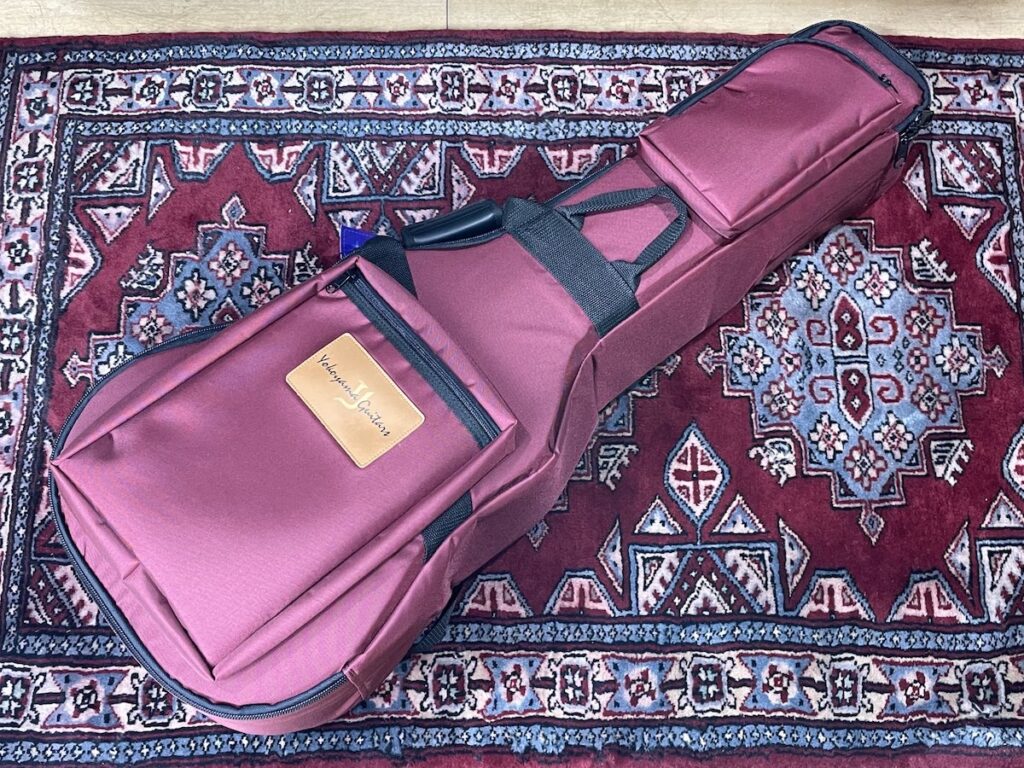 今回、ケースは特別に製作した「Yokoyama Guitars」ロゴ入り、NAZCAオリジナルギグケースが付属します。リュックタイプで背負えますので、レッスンやスタジオなどへの持ち運びも便利です。(※画像はバーガンディーカラーですが、アニバーサリーモデルのケースはネイビーカラーになります。)