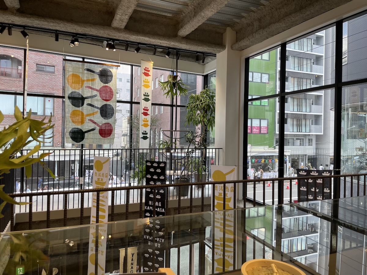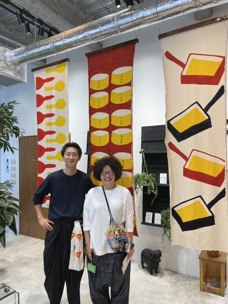 今回は釜浅商店さんとのコラボとの事で、キッチンの道具をデザインしたタペストリーが所狭しと風になびいていました。