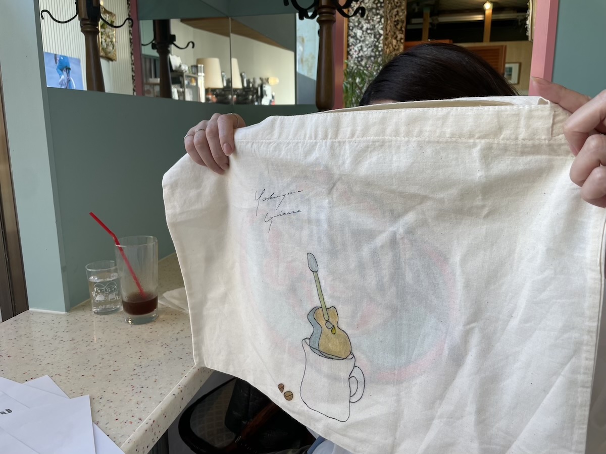 続いては、今年お客様に大好評だったTシャツのイラストデザインをしていただいた、デザイナー「 平塚 絢子 」さんとの打ち合わせで、神奈川県藤沢市まで。