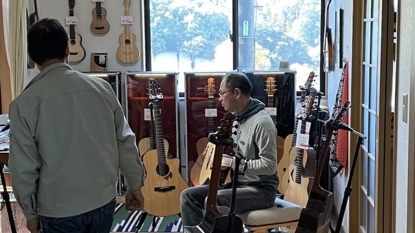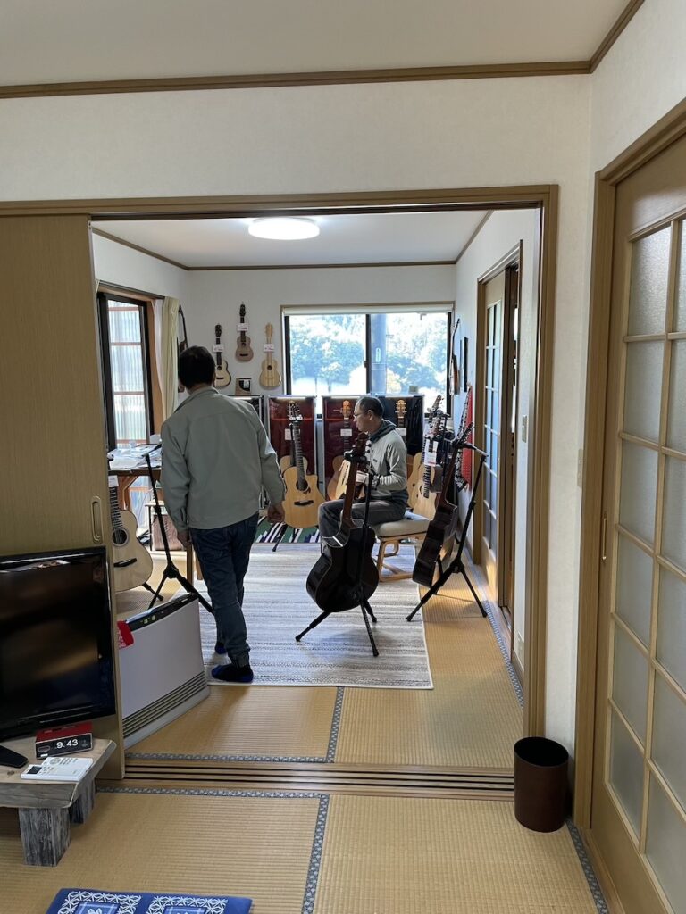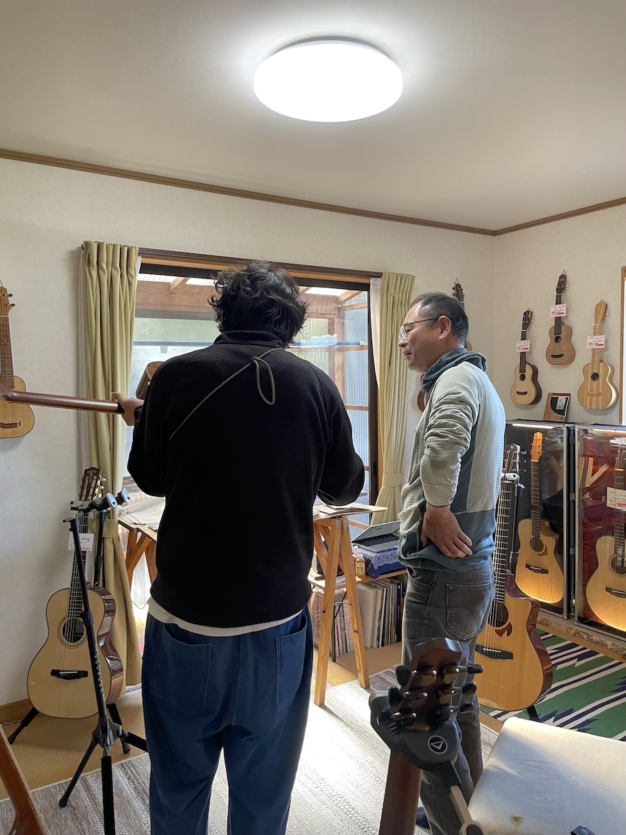 オフィスで色々と試奏いただいたあと、ご自身のギターの定期診断です。コンディションもバッチリで、調整の必要はなく、ご安心いただきました。これからの乾燥だけご注意ください!