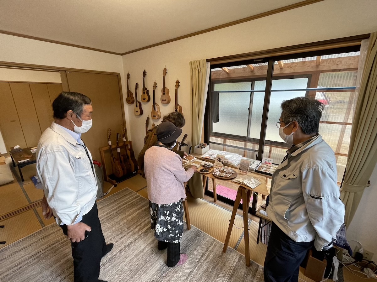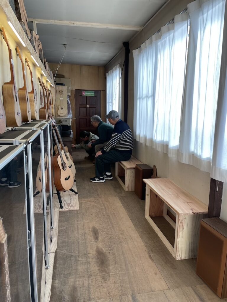 「横山さん、なんでギター作ろうと思ったのかしら?!」「横山さんって有名なのねー。」「Tシャツ着て宣伝しなきゃ!」などなど、地元の方でも実際にYokoyama Guitarsに触れる機会が少ないようで、とても面白いリアクションです。