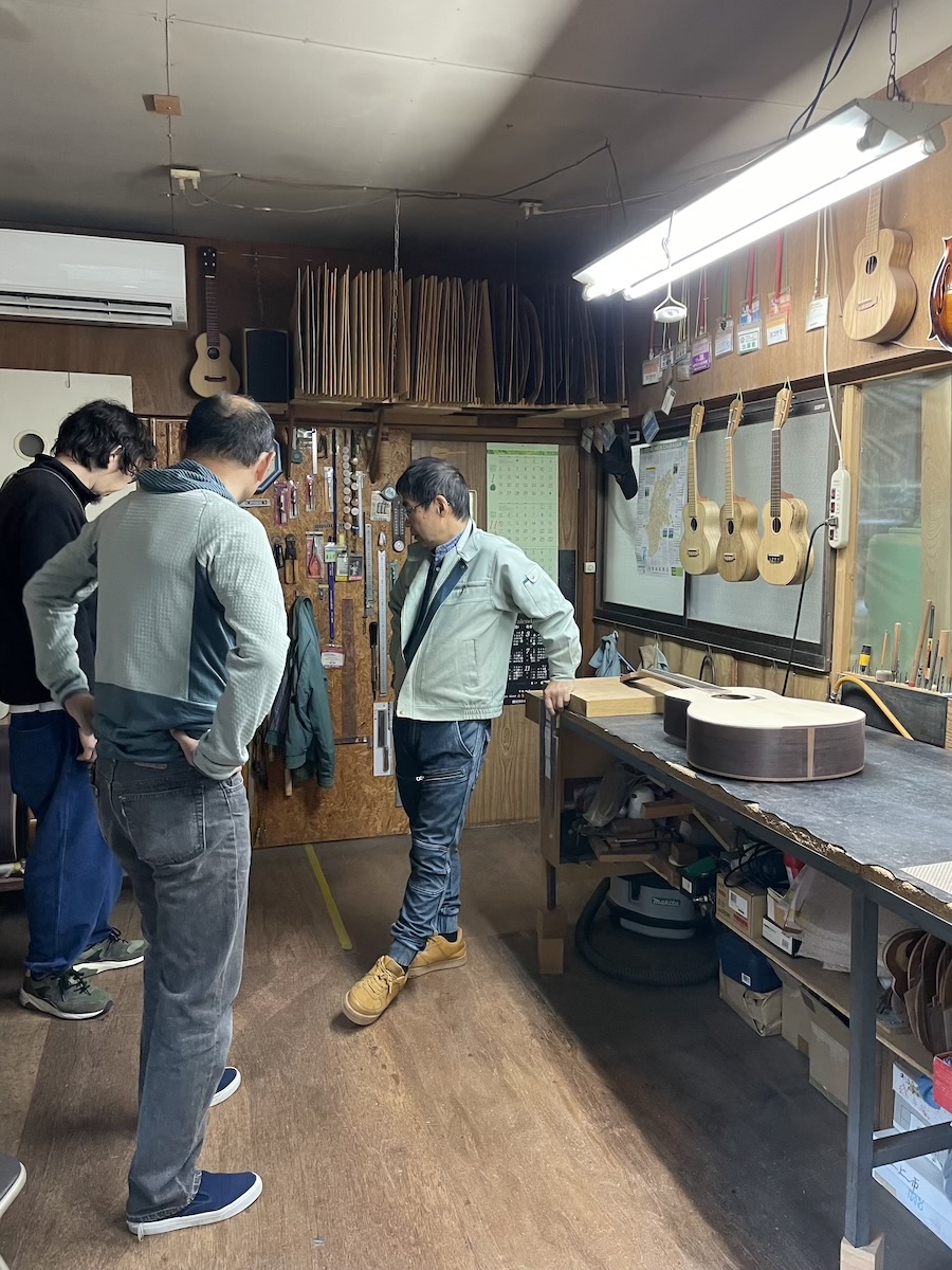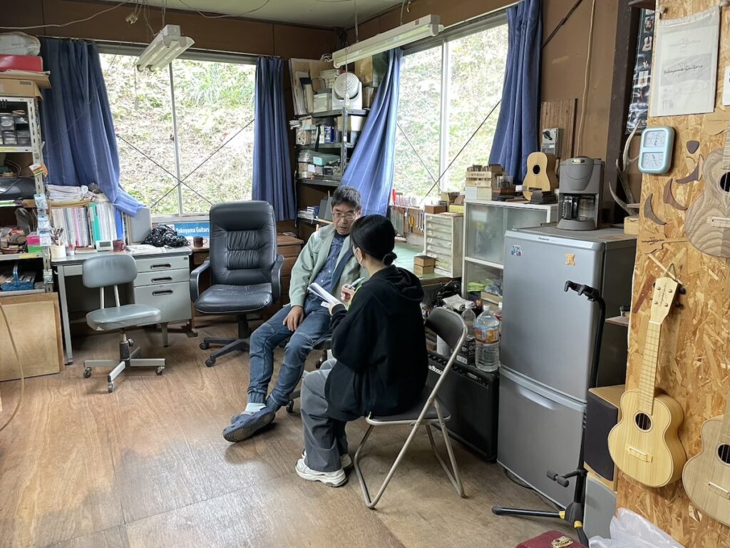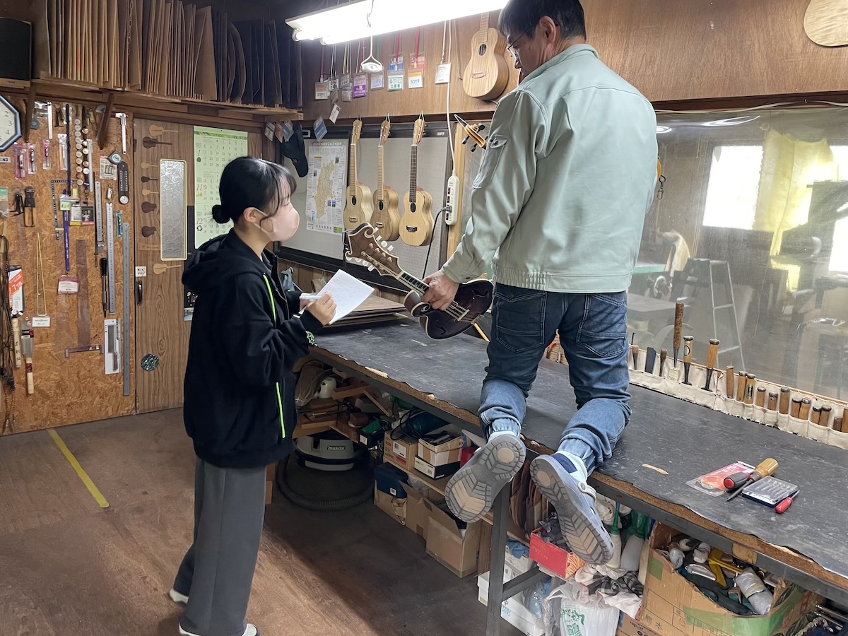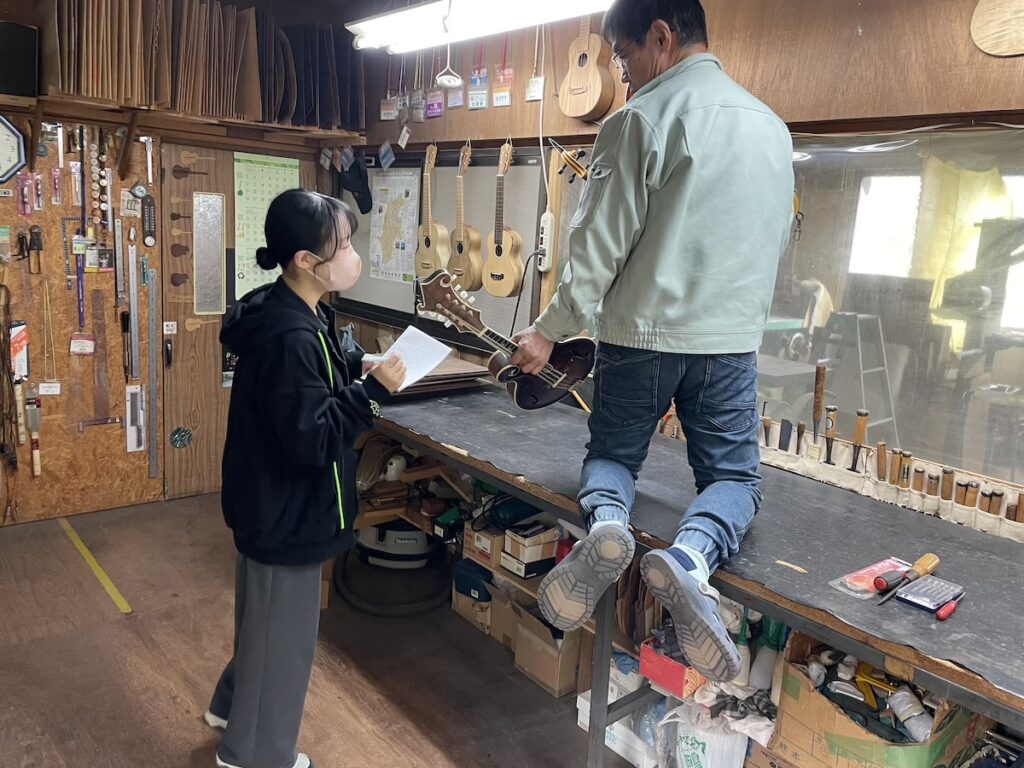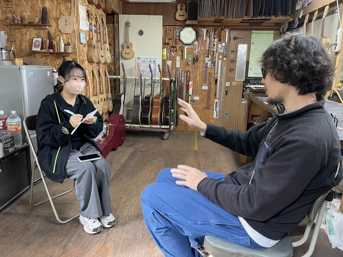 当工房だけでなく、長野県の工場、工房を取材されているそうです。卒論のテーマは「長野県におけるギター産業の発展について」だそうです。