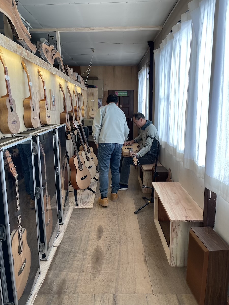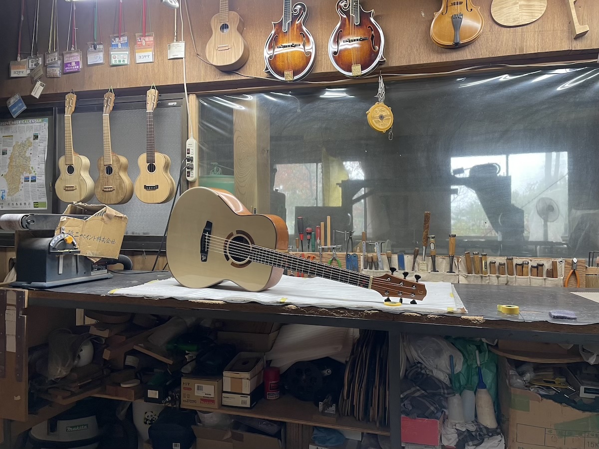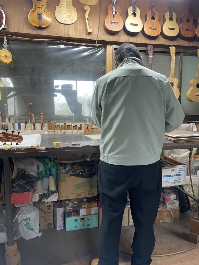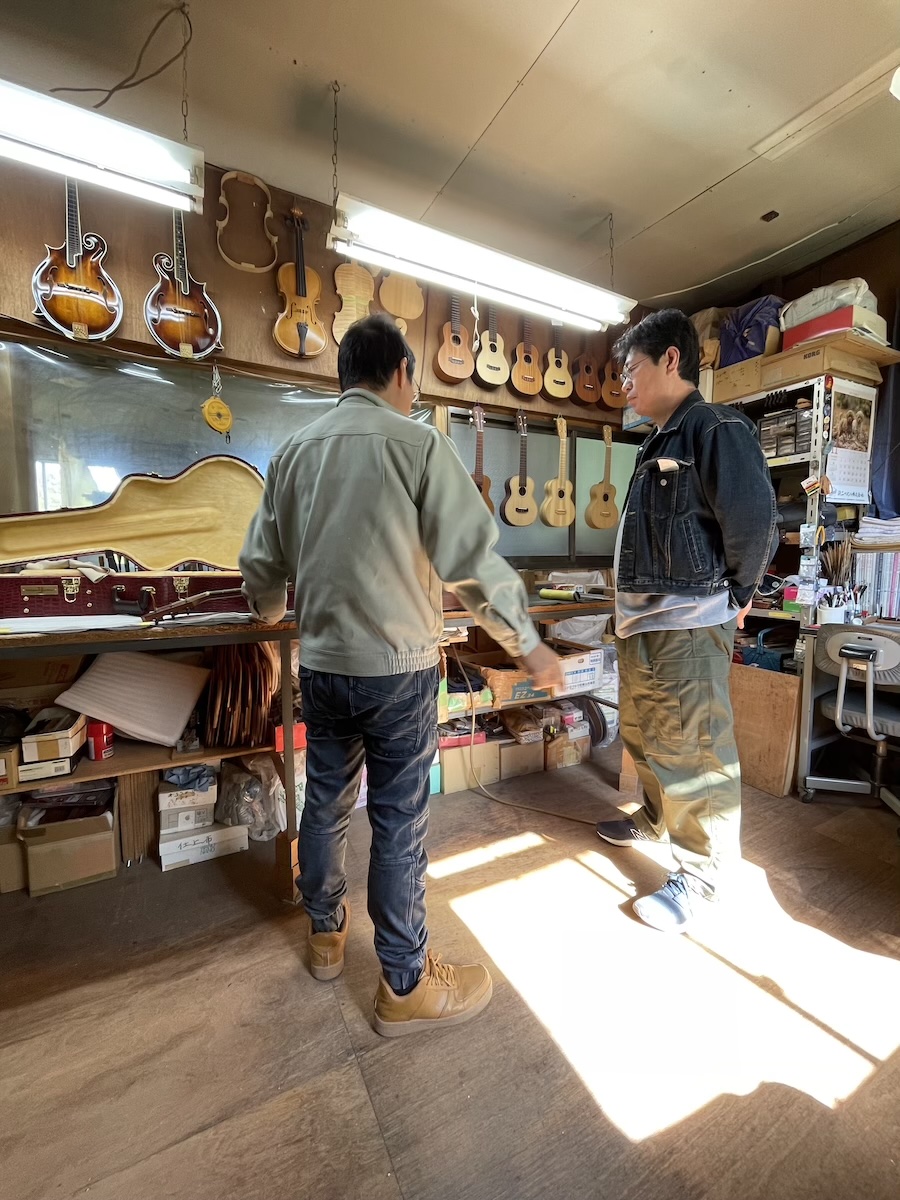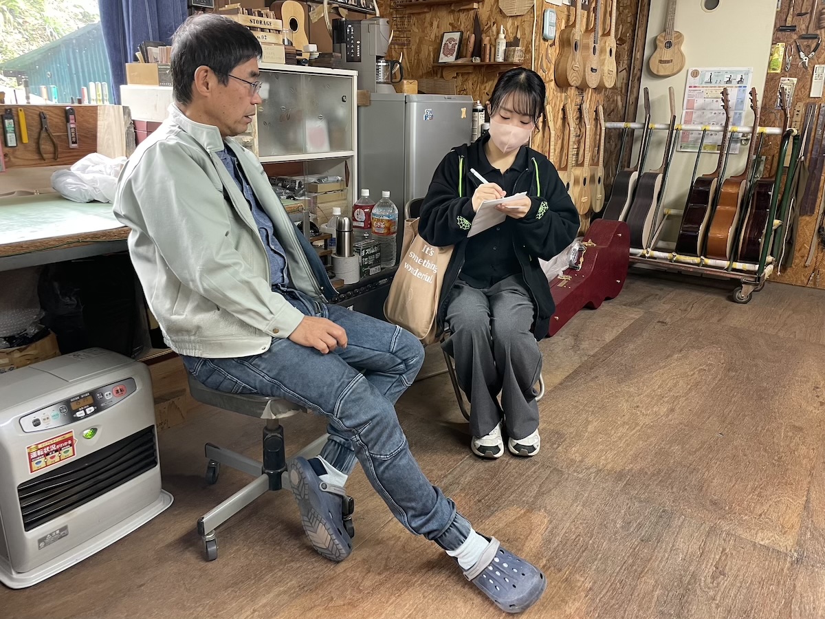 当工房だけでなく、長野県の工場、工房を取材されているそうです。卒論のテーマは「長野県におけるギター産業の発展について」だそうです。