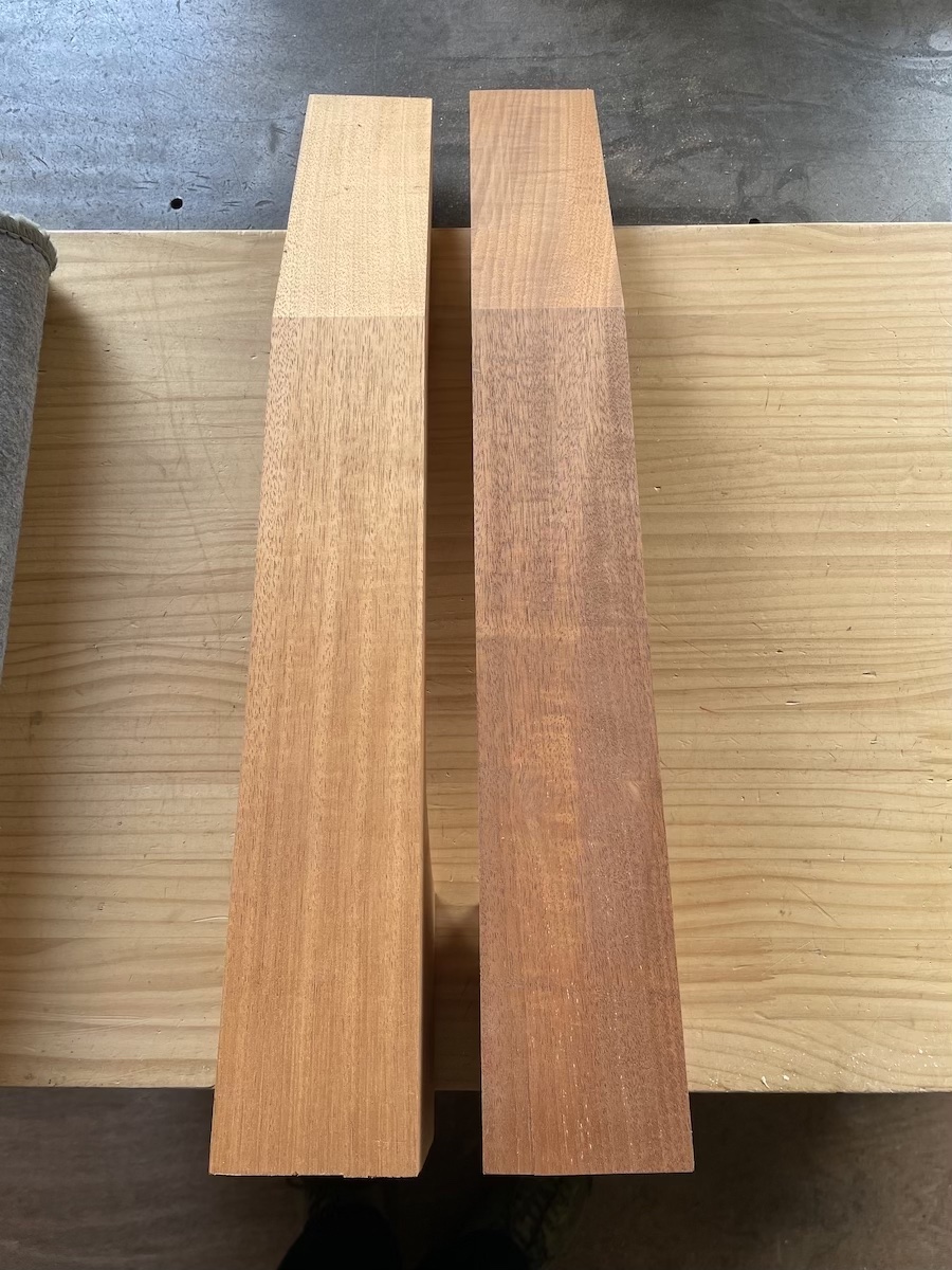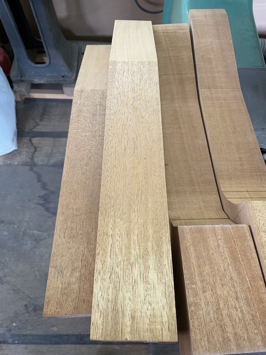 アフリカンマホガニー2P or 1P、フィジーマホガニー2P or 1P、ホンジュラスマホガニー2P or 1P、 アクアティンバーマホガニー1Pをストックしています。