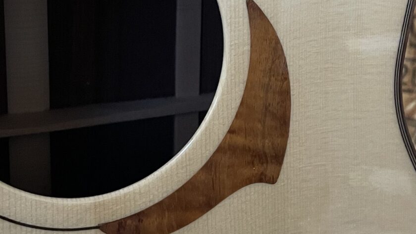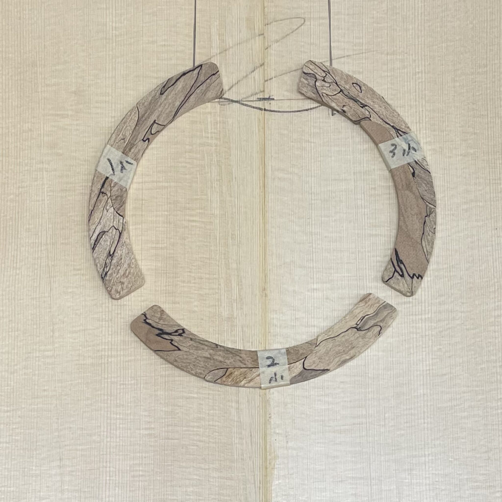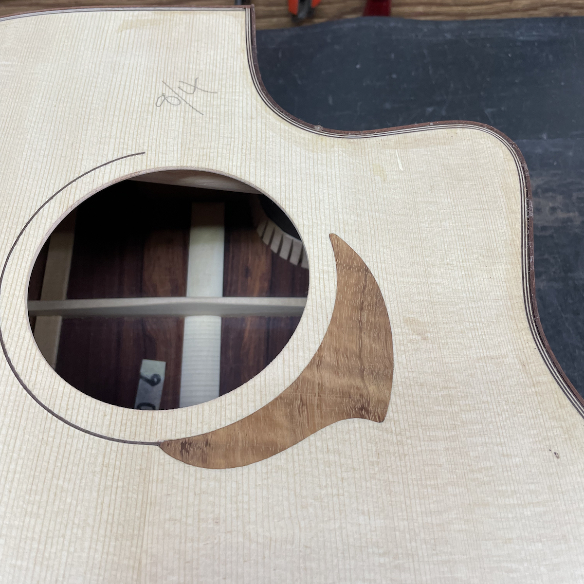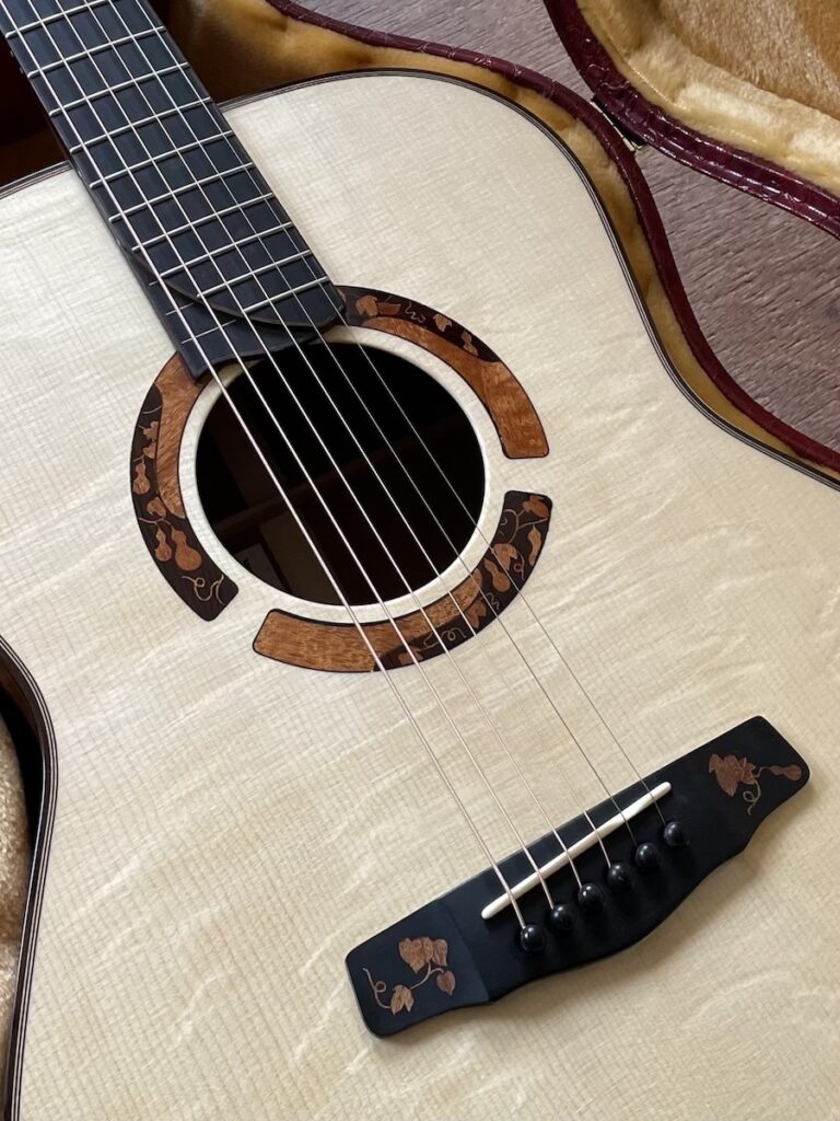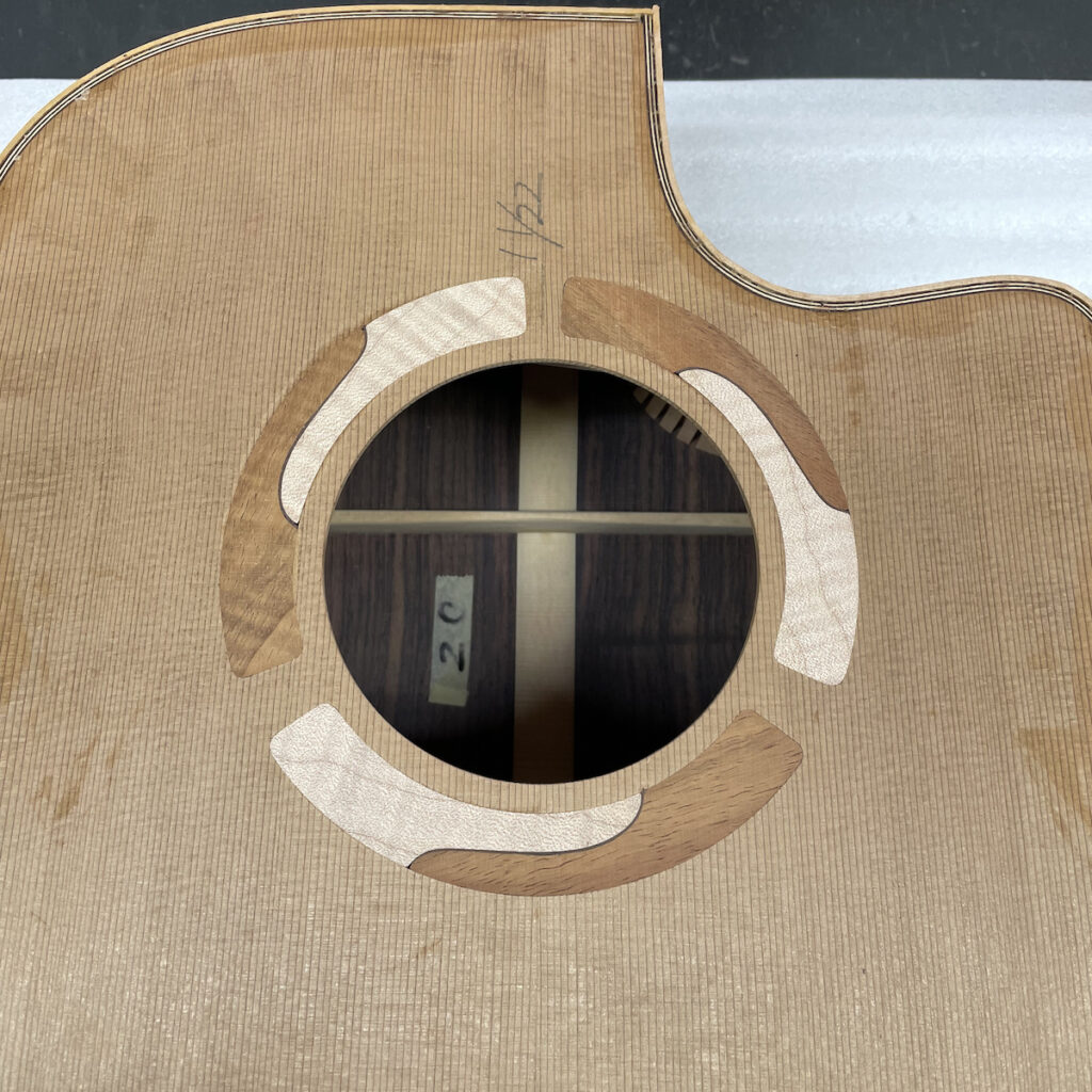 バック&サイドに採用した材料の端材、いわゆる「とも材」を採用するのも人気があります。