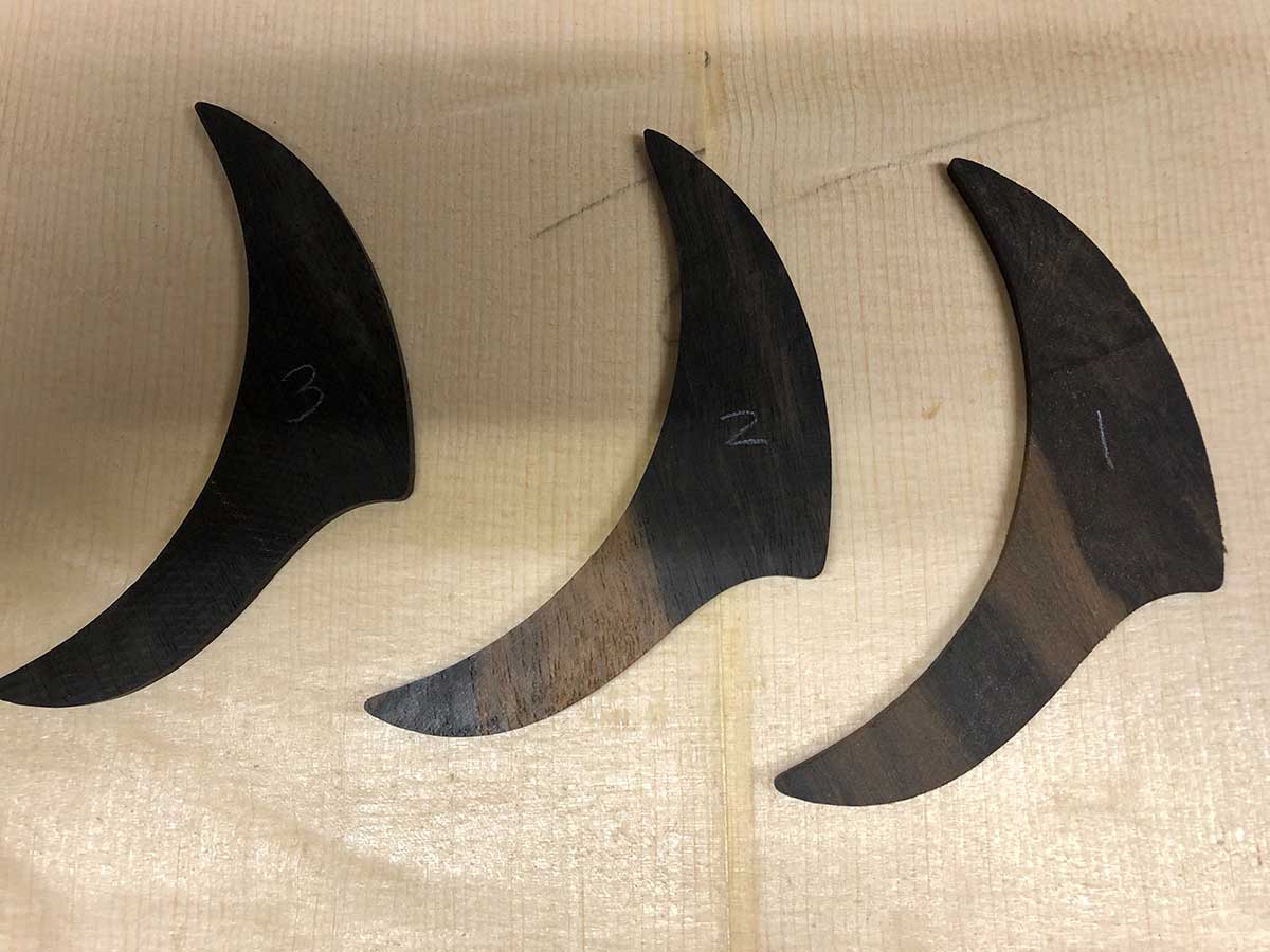 指板材は、ほとんどのオーダーが定番のエボニー材ですが、それ以外の材料もご用意しております。