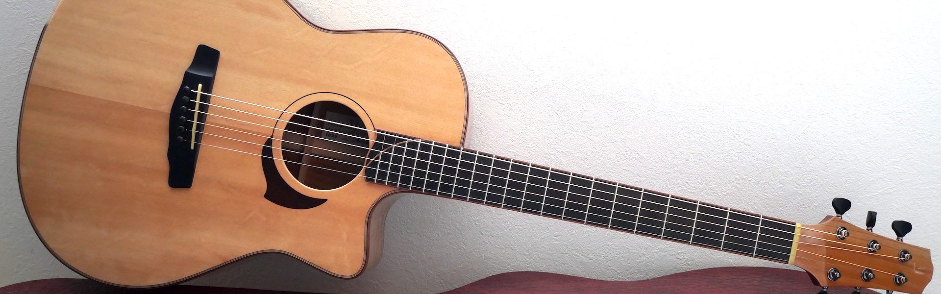 2024.01.13 販売価格:638,000円(消費税込み) アディロンダックスプルースをトップに採用したARシェイプモデル。 人気のラウンドカッタウェイシェイプ・モデル「AR」。 定番のインディア …