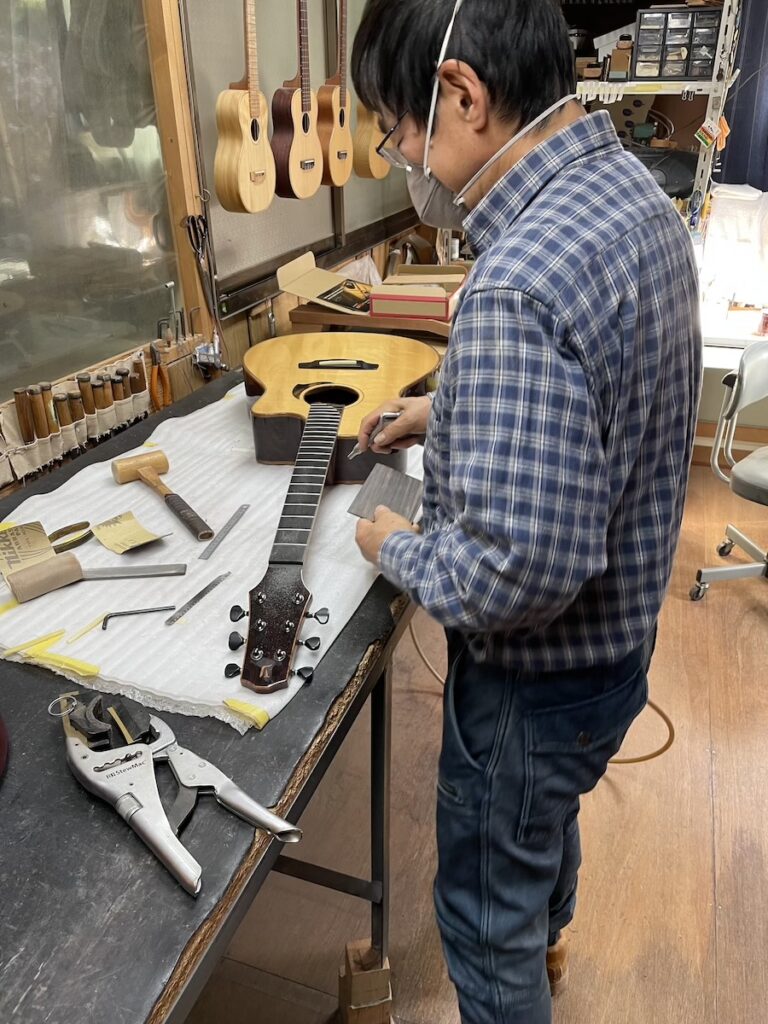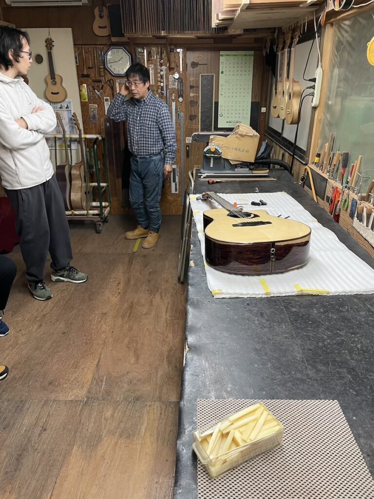 現在製作中のギターも進捗をチェックします。こちらも皆さま、お楽しみに!