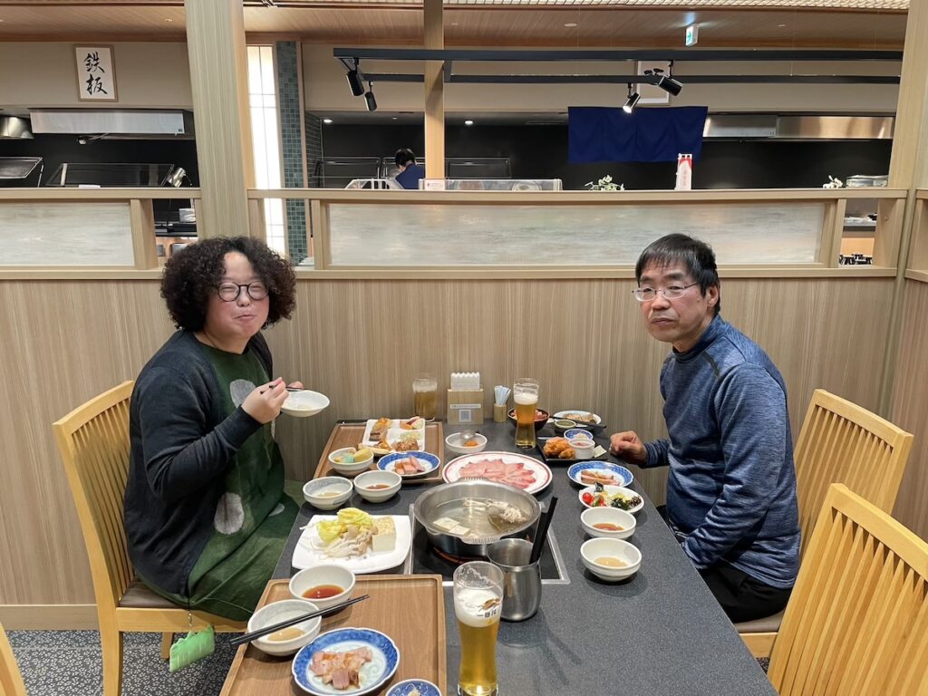 宇奈月温泉では雨になりましたが、暖かい温泉と、この季節ならではの「鰤しゃぶ」を全員で満喫。お手伝いさん(橋川嫁)もバイキングを楽しんでくれたようです。