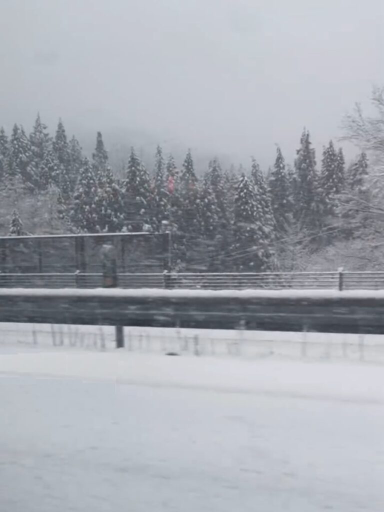 上越ジャンクションを経由して、妙高あたりはものすごい吹雪!雨、雪の狭間を彷徨っていた日本海側とは打って変わって雪国の景色に様変わりです。