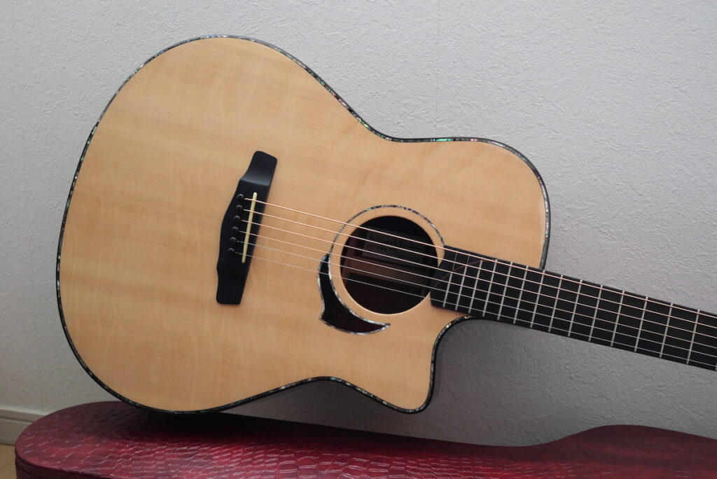 ドラマチックな杢の材も魅力的ですが、こちらの材はアコースティックギター好きにはたまらないと思います。