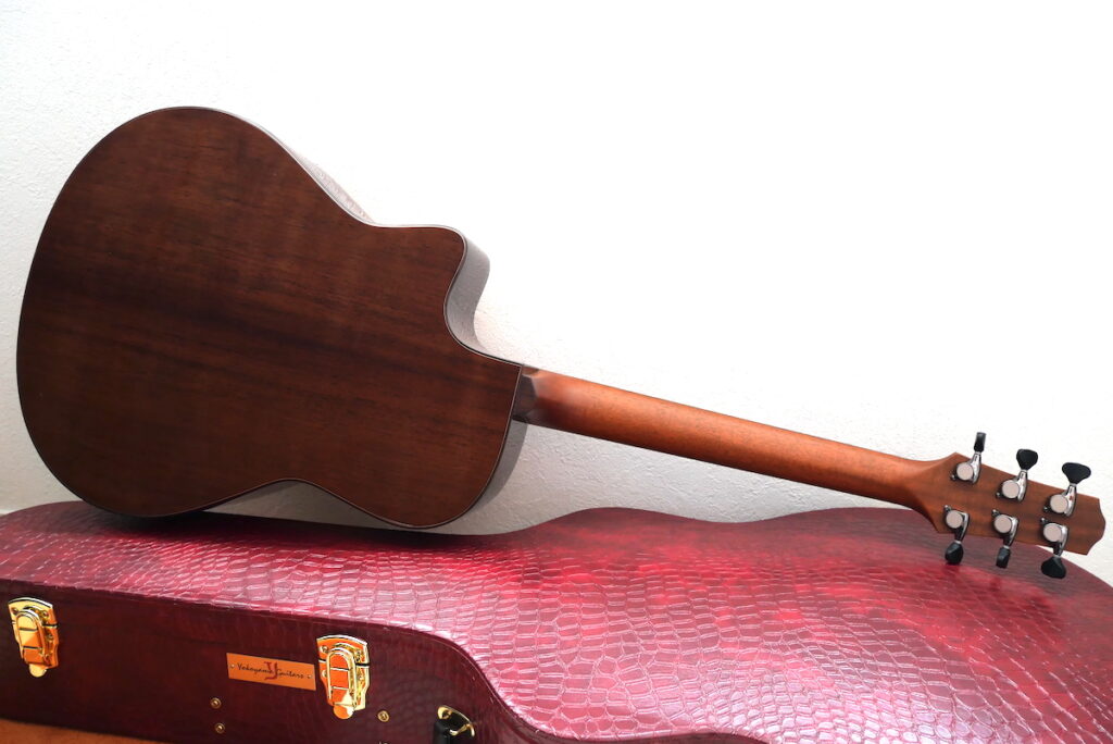 バック&サイドは、一見ブラジリアンローズウッドと見間違えるほどのマダガスカルローズウッド。