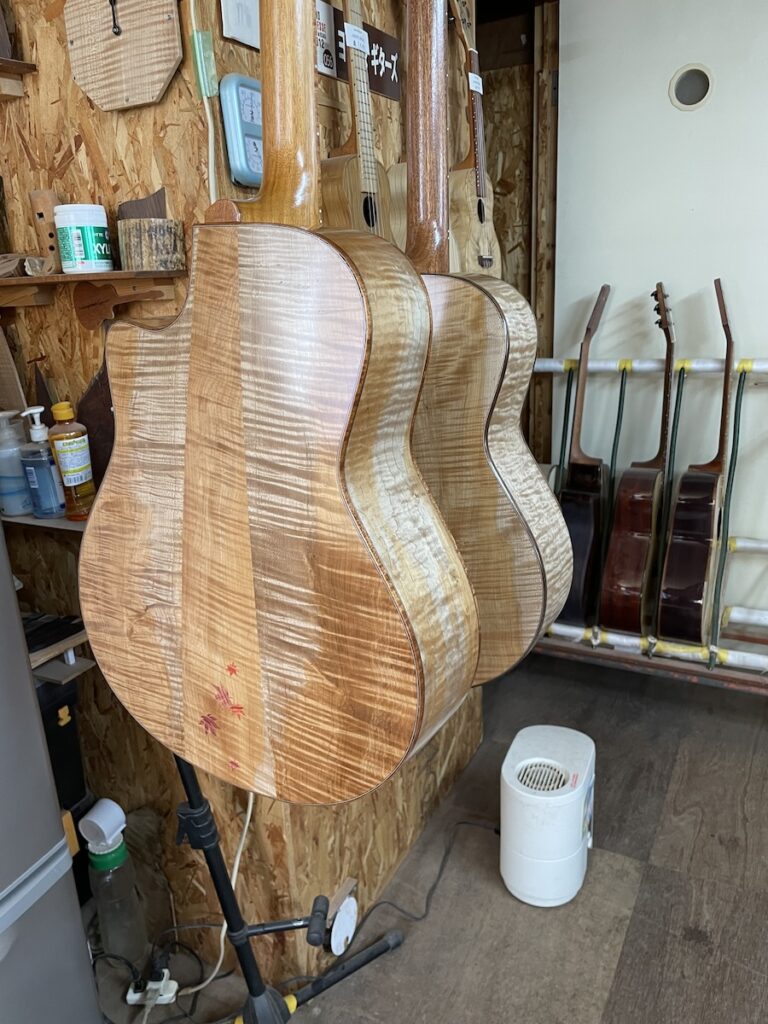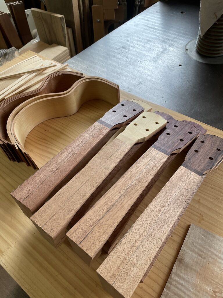 バック材の厚胴マホガニーも残りわずかです。確保しにアイチ木材さんにも行かないといけませんね。