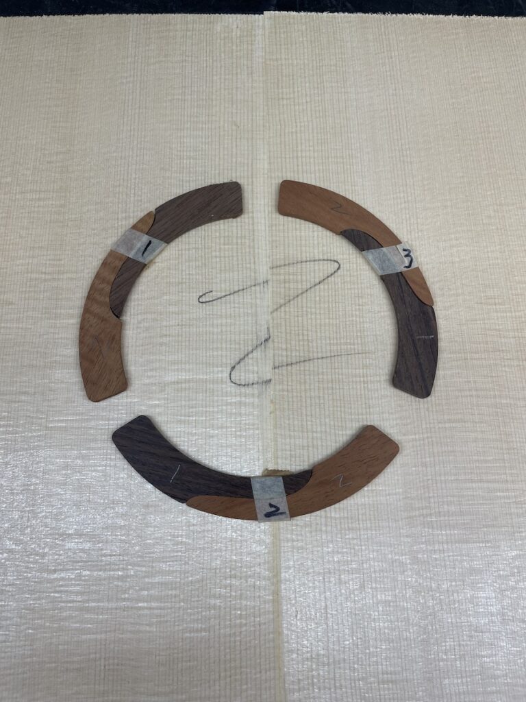 ヘッド天神材はホンジュラスマホガニー、バインディング材はウォルナットになりました。こちらも製作を開始したいと思います。