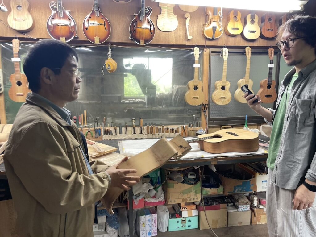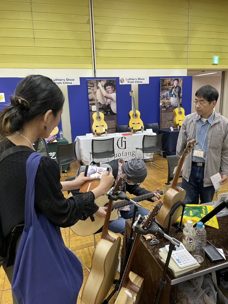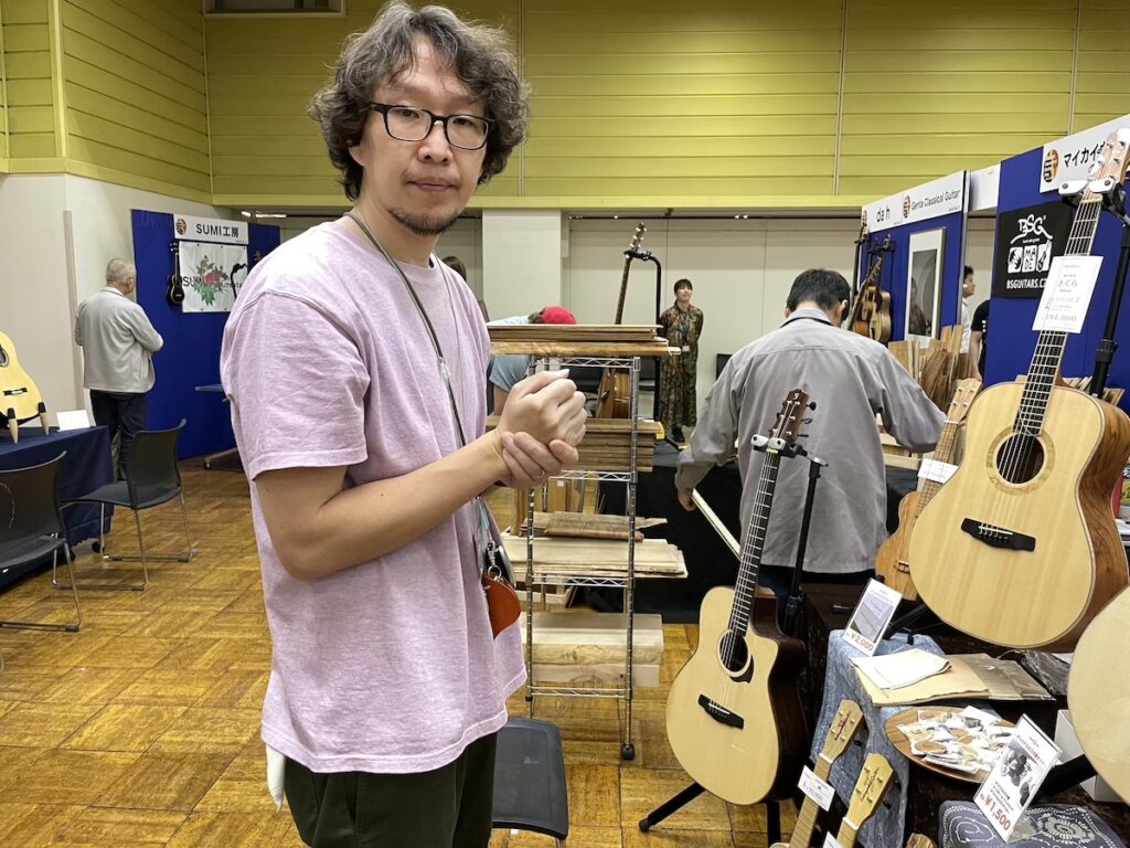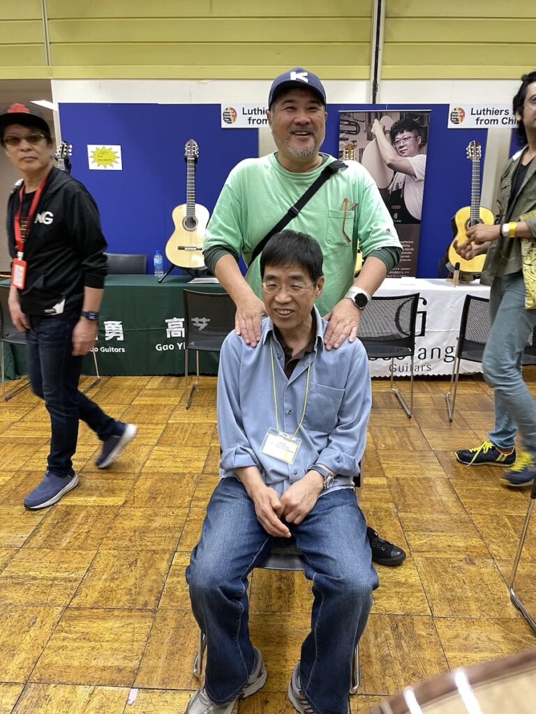 時間がある時に、製作者同士の情報交換タイム。皆さん、和材の話題で持ちきりでした。やはり珍しい材料ですから、この機会に音もチェックしていただきました。