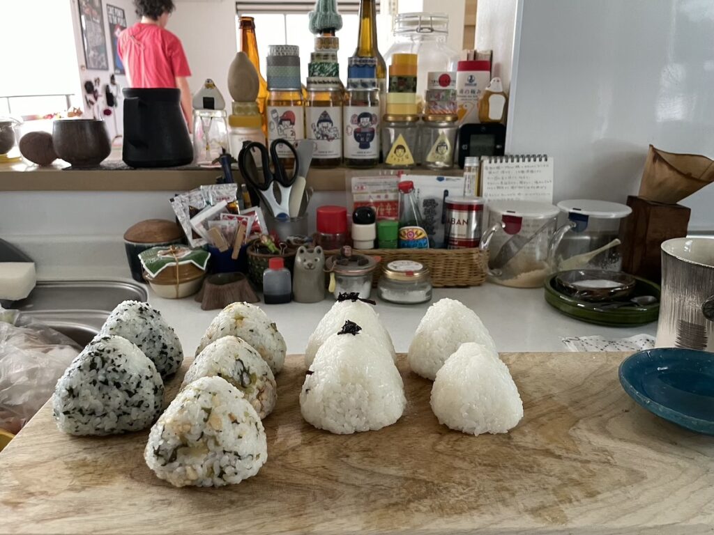今年も、TOKYO OFFICE 橋川(嫁)による、お客様&スタッフ用の会場おやつを持参です。毎年恒例のマフィンにプラスして、おにぎり(実家の南魚沼産コシヒカリ)も握りました。