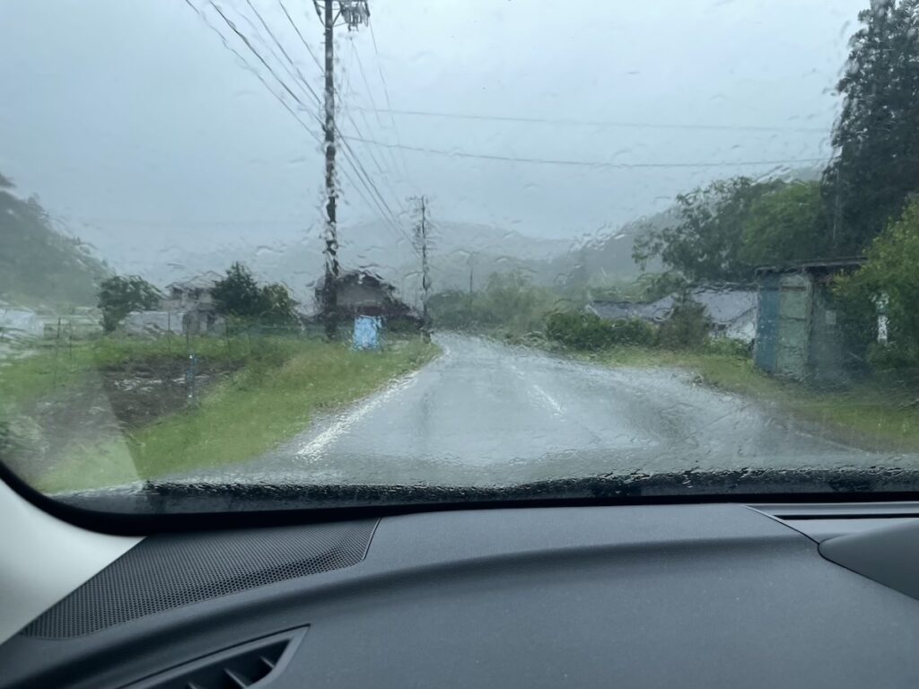もの凄い雨の中の移動となってしまいましたが、工房へ着く頃は少し小降りに。