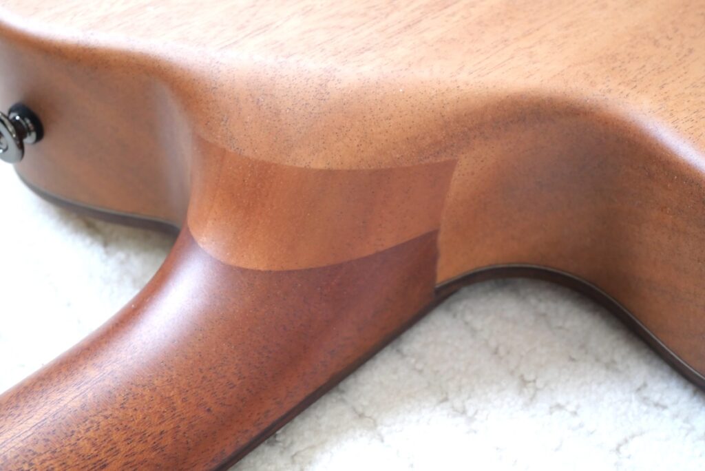 ボディの抜き方もひと手間かけて、以前のものより少しサイド、バックの板厚を変更しています。