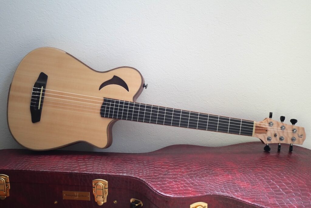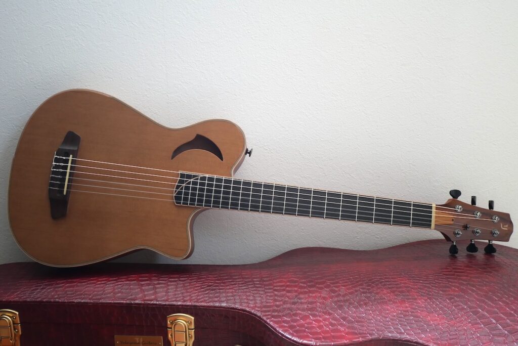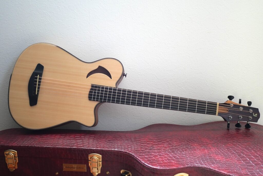 これにてスチール弦、ナイロン弦モデルとも、主要なスペックが勢揃い。スチール弦【スプルース、マホガニートップ】、ナイロン弦【46.0mm、48.0mmナット幅 / スプルース、シダートップ】といった感じです。