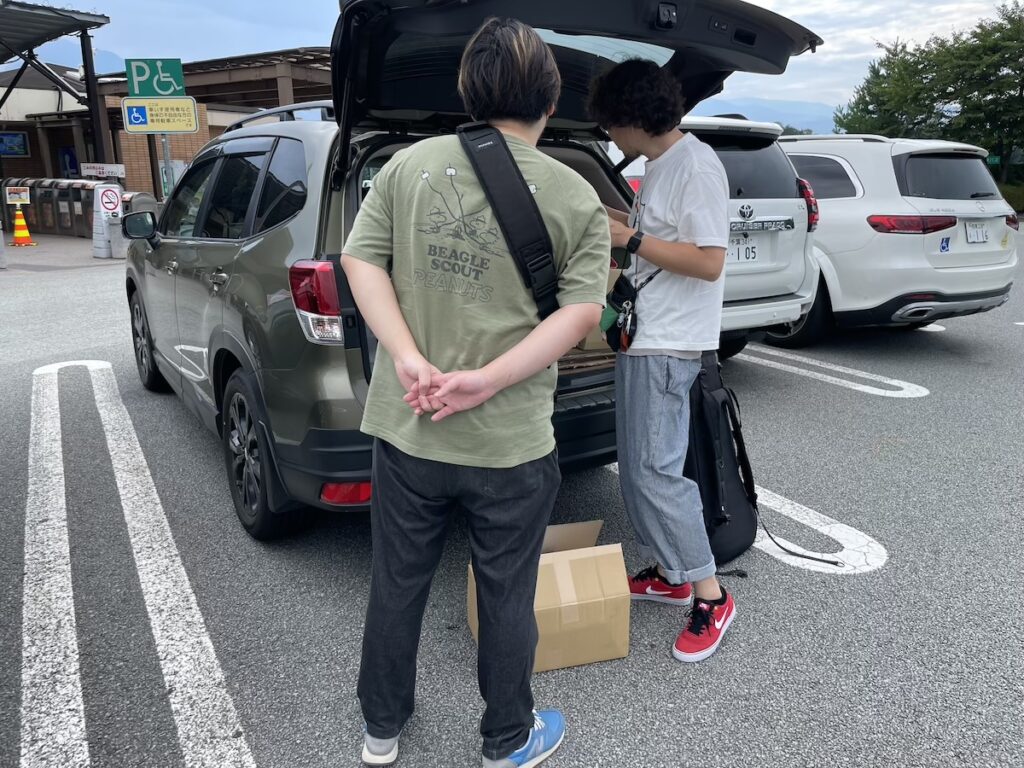 TOKYO OFFICE組は、長野へ来る途中に八ヶ岳PAで、現在オーダーいただいている山梨県 A様にオリジナルTシャツをプレゼント。とても喜んでいただけました。嬉しいですね。