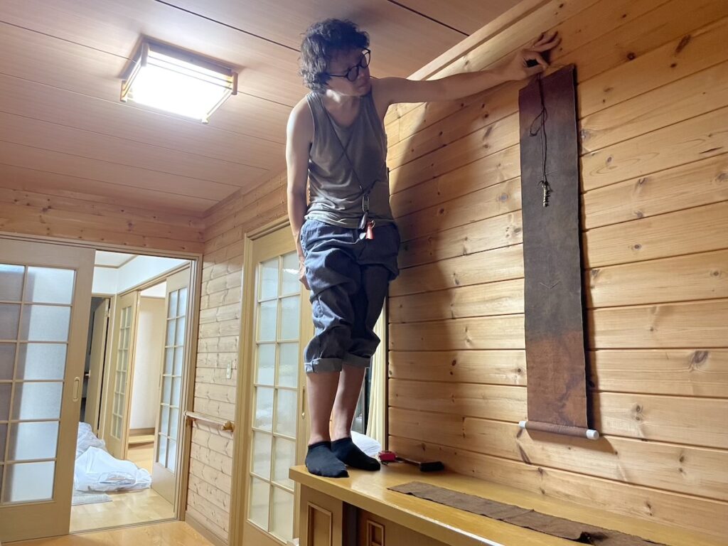 窓、天井、壁と拭き掃除をしつつ、用意したラグなどを配置していきます。