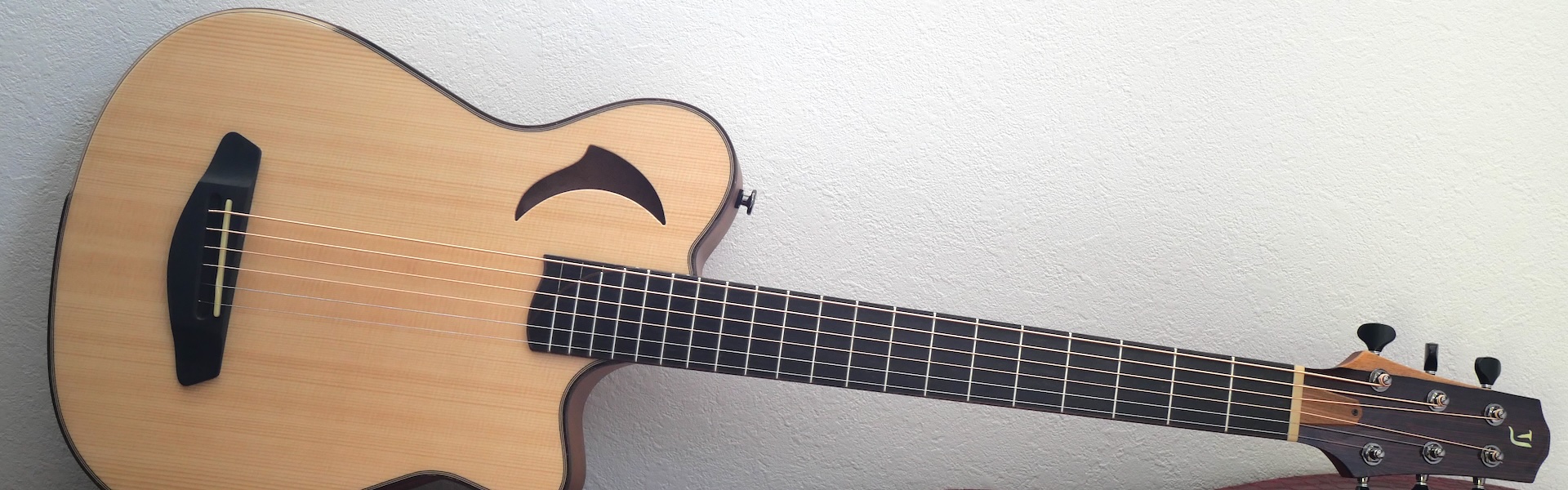 2024.07.07 販売価格:242,000円(消費税込み) コンパクト・アコースティックギター「Leaf-Quiet」。シダートップ採用のナイロン弦仕様です。 お客様からもリクエストの多かった、コ …